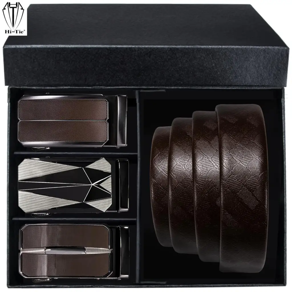Роскошный набор мужских ремней в коробке, Коричневый мужской ремень из коровьей кожи, винтажный ремень с автоматической пряжкой, деловой пояс, подарок