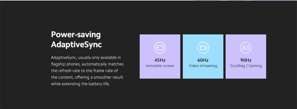 AdaptiveSync, как правило, доступен только в флагманских телефонах, автоматически соответствует скорости обновления к частоте кадра содержимого, предлагая более плавный результат при продлении срока службы батареи.