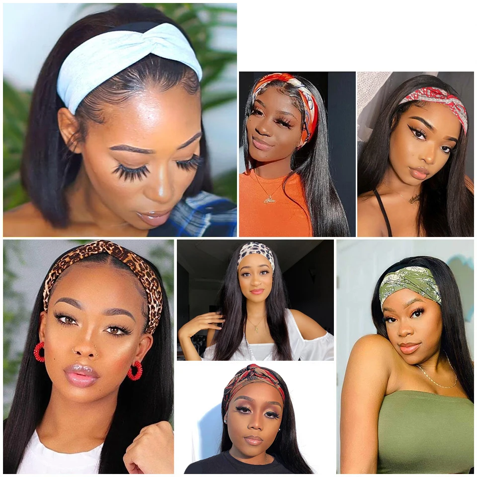 Бразильские прямые волосы боб эластичный парик с головной повязкой ...