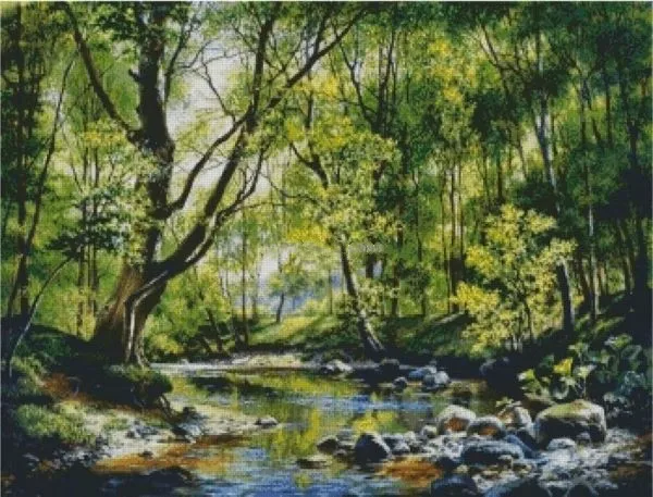 Лесная хижина мост пружина вода высшее качество вышивка рукоделие 1...