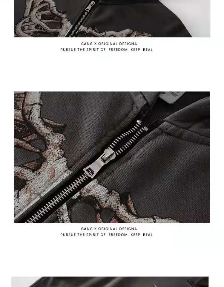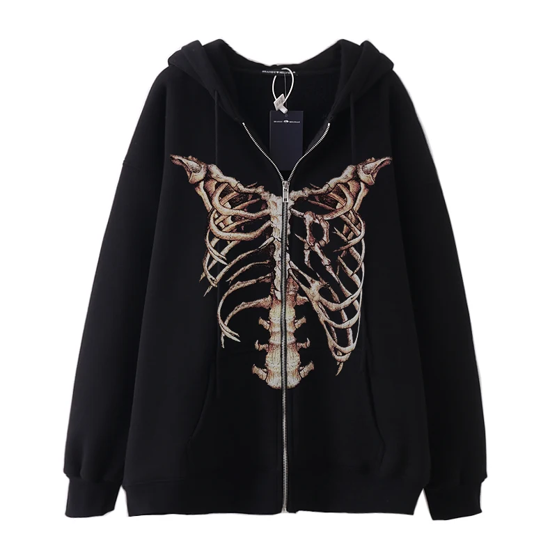 Винтажная Толстовка большого размера в стиле Харадзюку Y2K в стиле панк, свитшот с длинным рукавом и принтом в виде гранж-черепа для E-girl в готическом стиле, Женская куртка