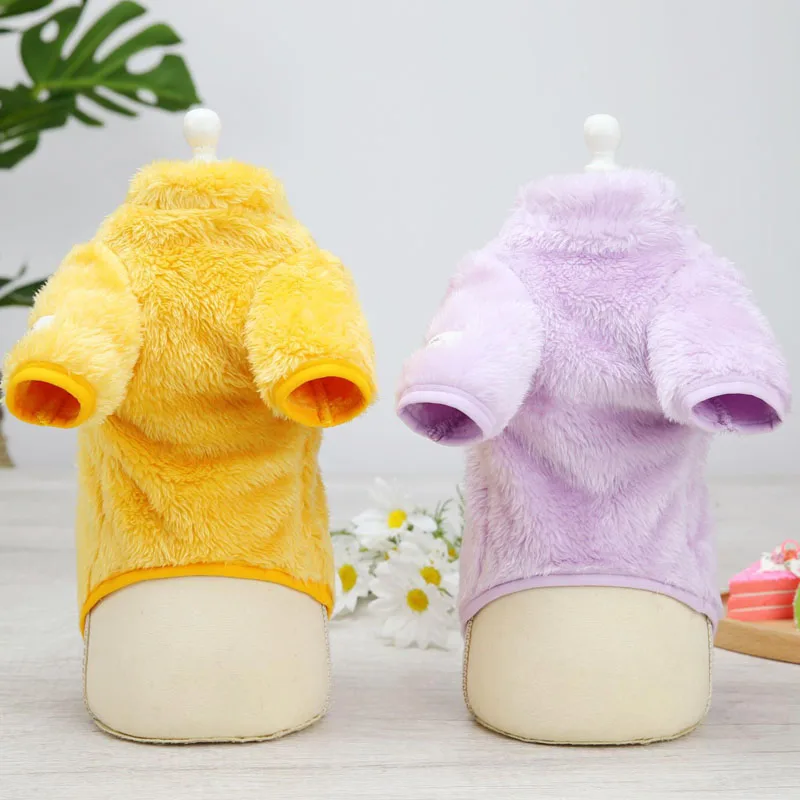 Мягкая теплая толстовка для собак, пальто, одежда для домашних животных, свитшот, свитер, зимний длинный плюшевый пуловер, толстовки, розовая, желтая, синяя, фиолетовая одежда для кошек