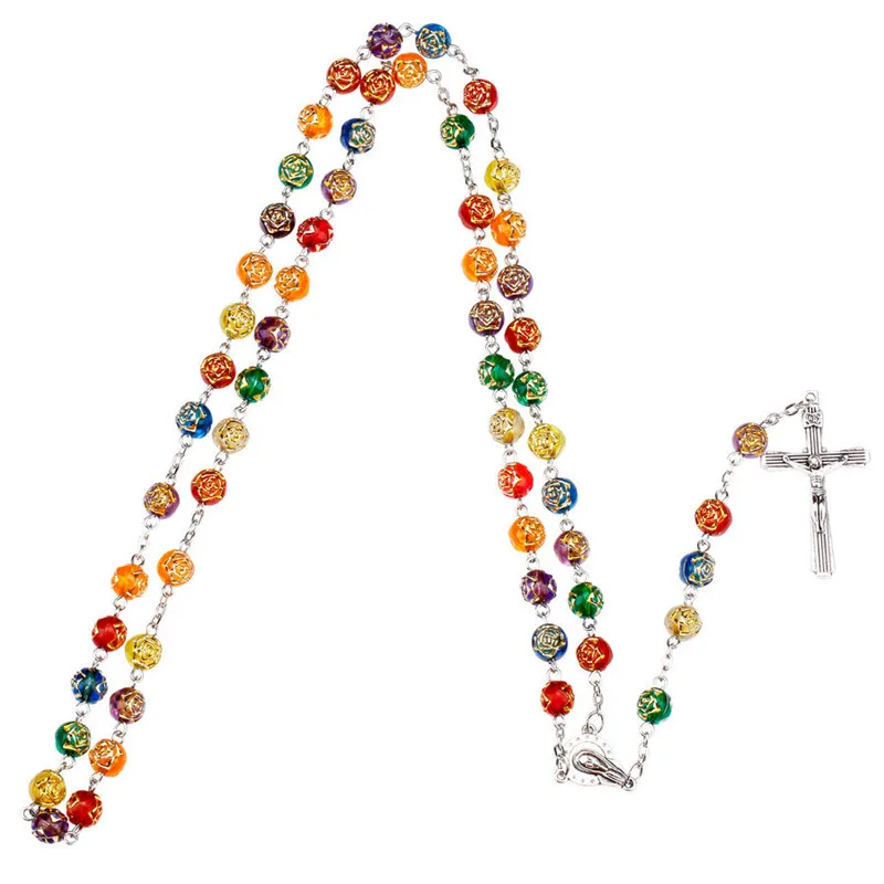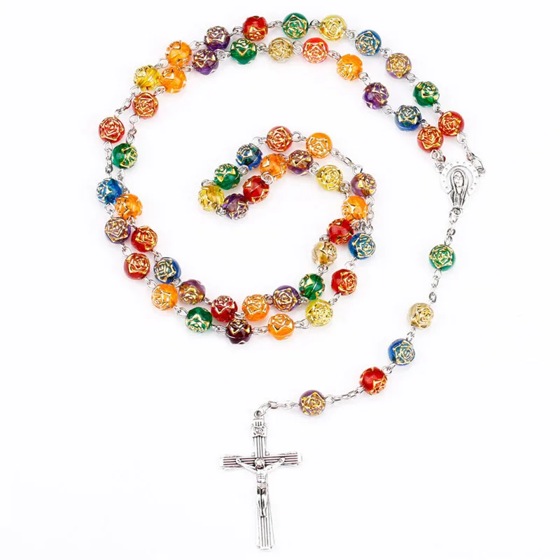 Новый модный стиль разноцветные розы пластиковые бусины Иисус крест...