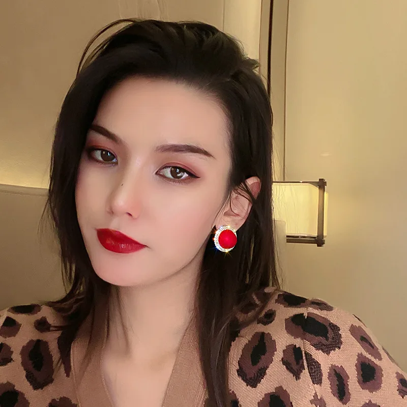AOMU S925 осенне-зимние корейские милые металлические красные серьг...