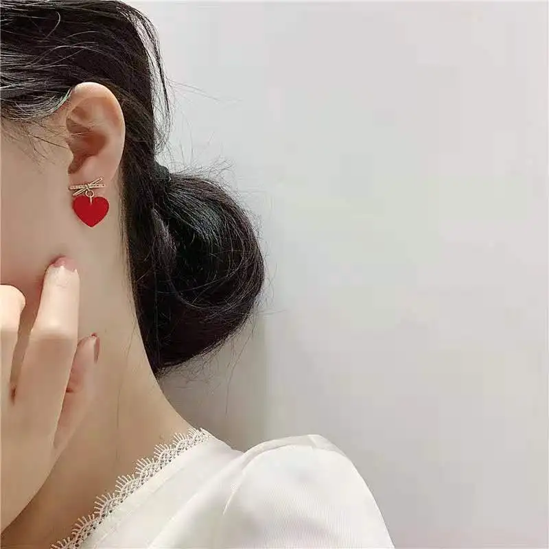 Новые модные серьги-капли с красным сердцем и бантом для женщин и девочек, Эффектные серьги, ювелирные аксессуары, вечерние серьги 2020