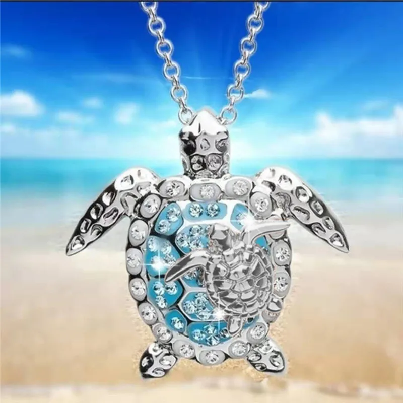 Женская Длинная цепочка с кубическим цирконием, с голубым опалом