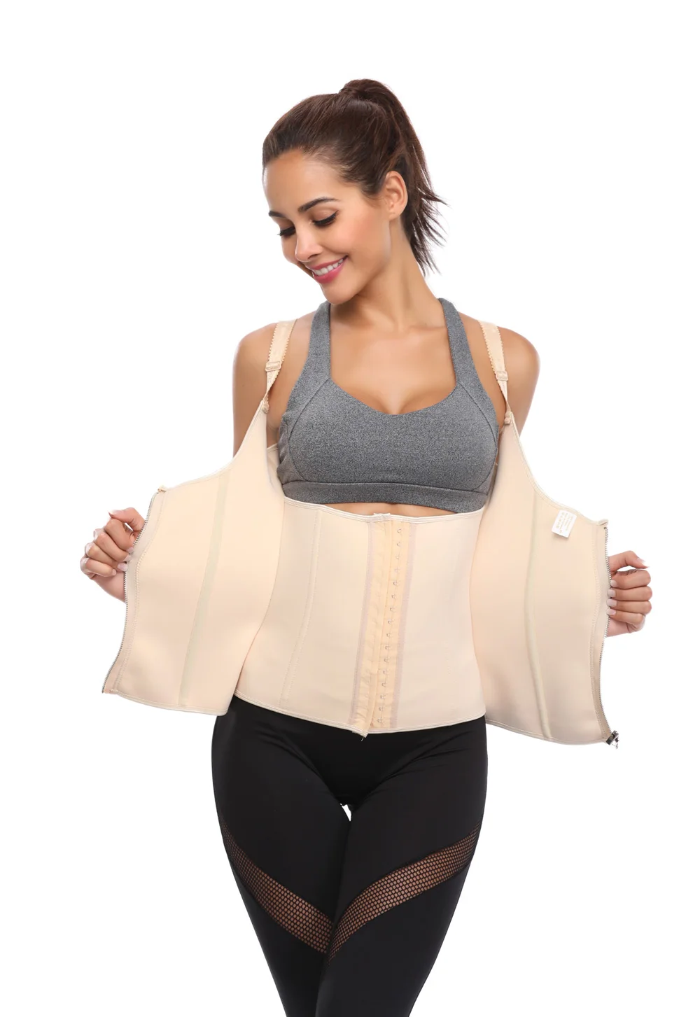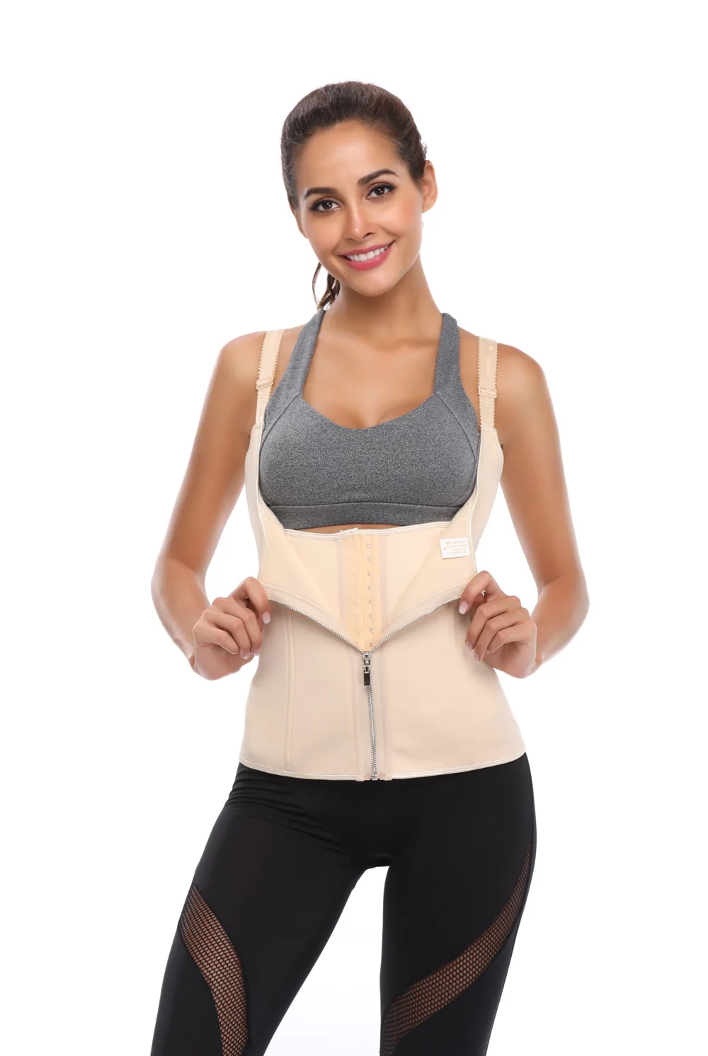 Женский тренировочный жилет пуш-ап, утягивающий пояс для живота, корсет на молнии, размера плюс, XS-6XL, моделирующее белье 9068