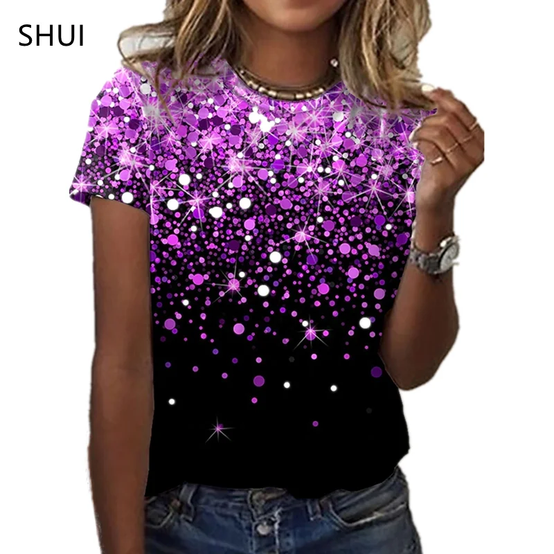 Женская летняя повседневная футболка с круглым вырезом, свободная дышащая рубашка в стиле Харадзюку С 3D-принтом