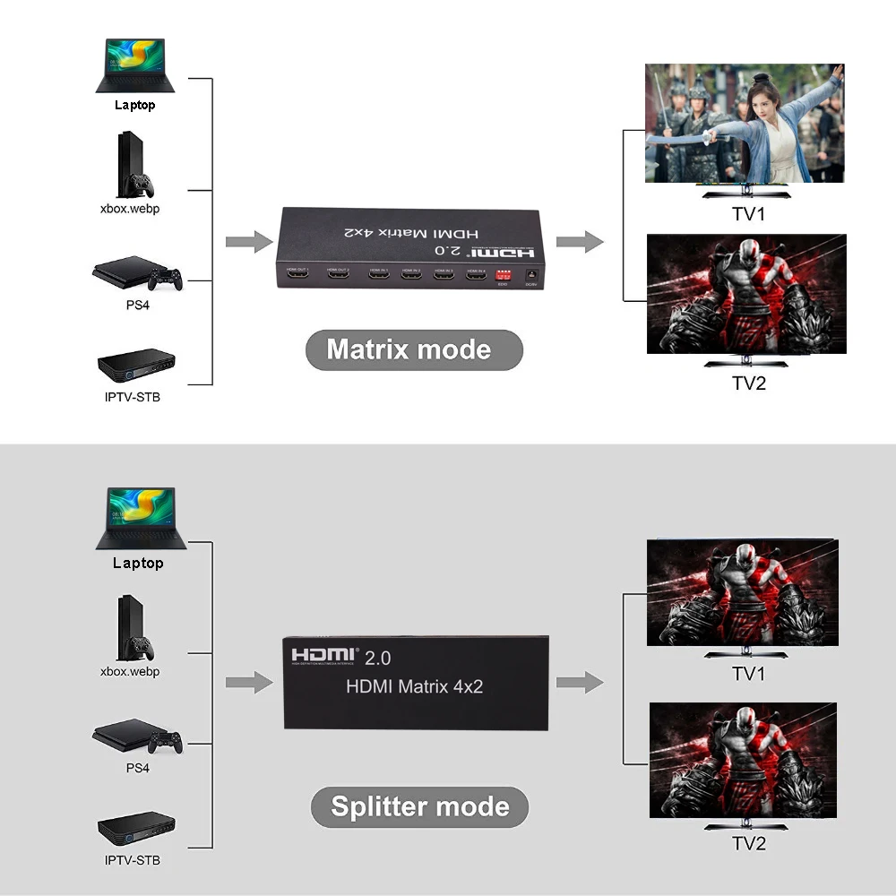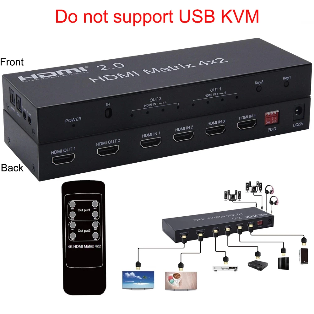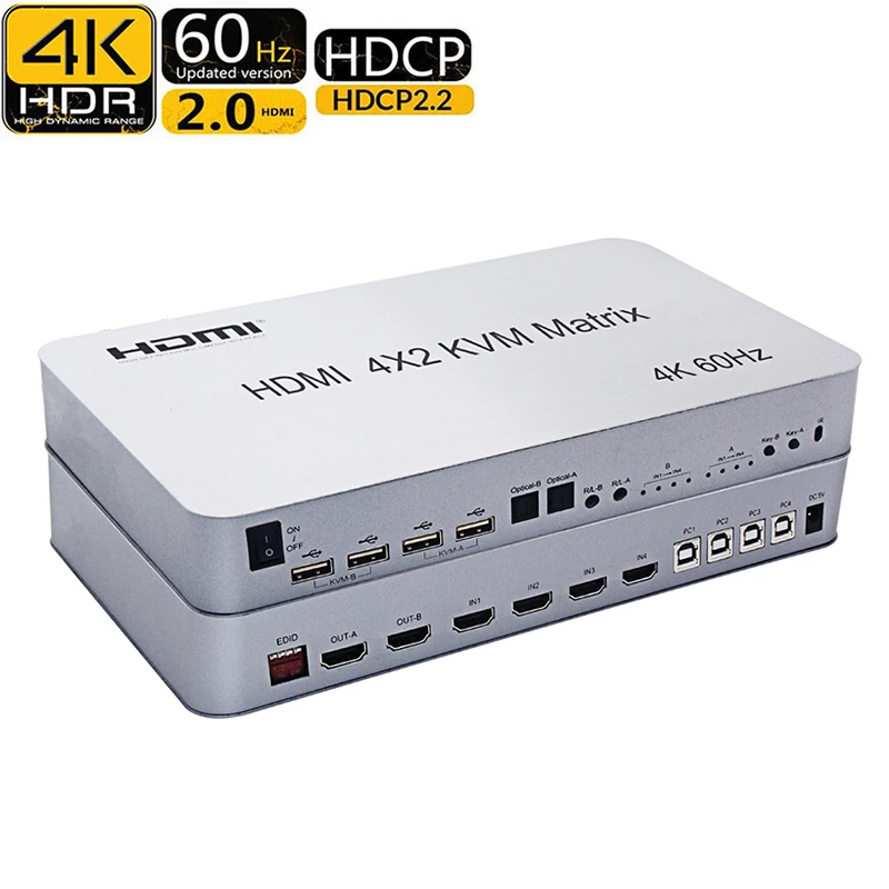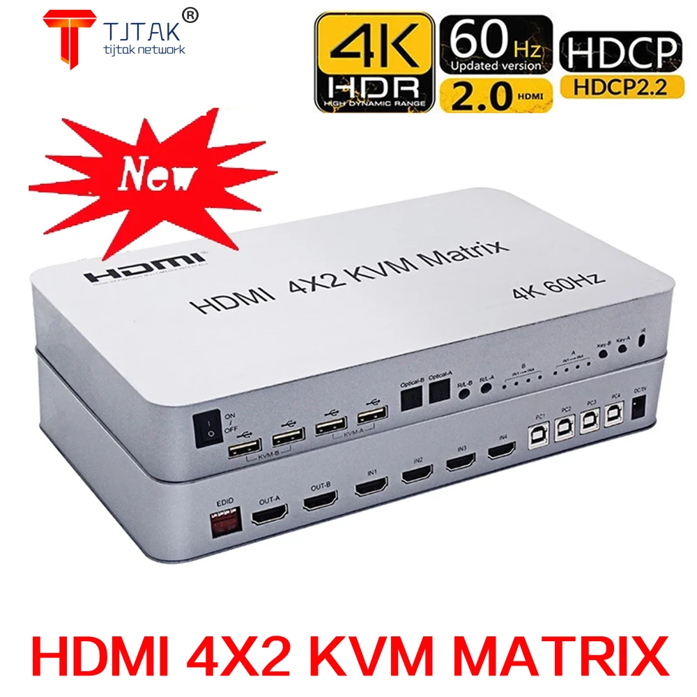 4-портовый матричный переключатель HDMI KVM, kvm-переключатель 4x2 Hdmi, 2 порта, два монитора, 4 порта, двойной монитор, KVM-переключатель, матричный переключатель HDMI USB