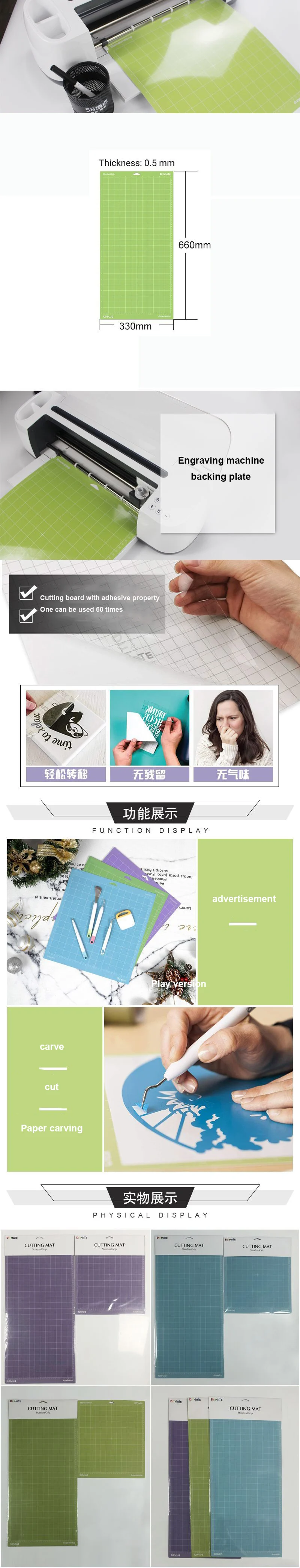 Название продукта: прокладка плоттера, коврик для резки (3 шт.) Использование: Светильник сцепление синий светильник клей коврик для резки: --- специально разработан для светильник вес материалов, в нем используется для обычной офисной бумаги светильник картон, крафт-бумага, винил, японская бумага и т. д. Стандартный зеленый средний клейкий коврик для резки: --- подходит для различных материалов среднего веса, и используется для печати гладильной бумаги, флэш-карты, печати наклеек, строительной бумаги, окна адсорбции, ткани для печати и т. Д. Stronggrip фиолетовый тяжелый клейкий коврик для резки: --- подходит для фиксации тяжеловесных материалов и используется для толстого кардштока, специальной кардштока, магнитных материалов, плакатных досок, тканей с армирующими агентами и т. д.