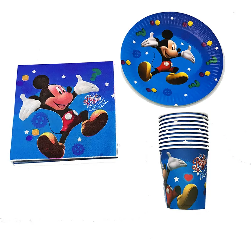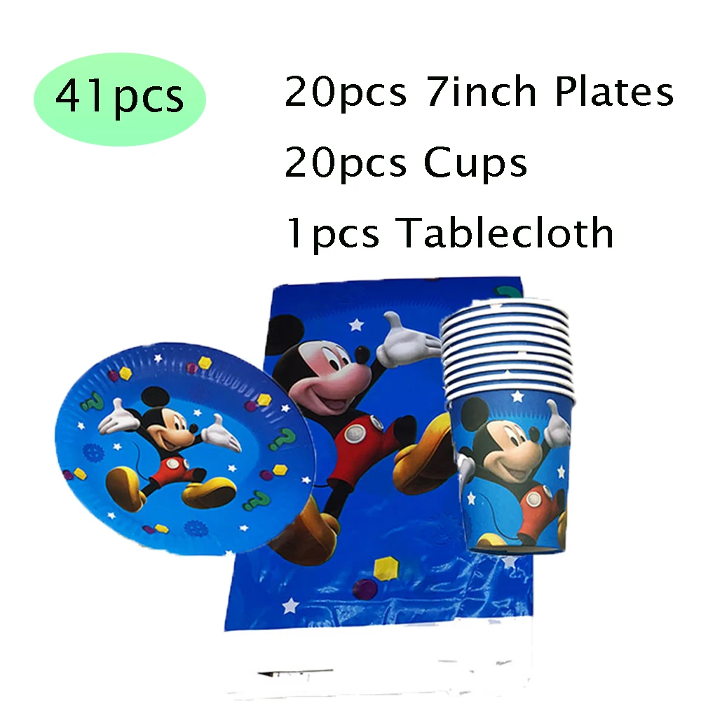 Набор из 41 предметов, украшения для вечерние с Микки Маусом, в стиле синих точек, детская посуда для дня рождения, столовые приборы, салфетки
