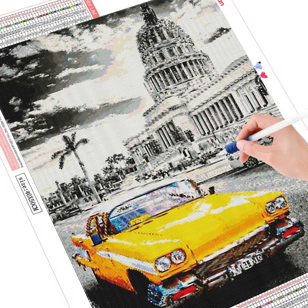 HUACAN 5D DIY Алмазная вышивка черно-белый пейзаж алмазная живопись автомобиль полный квадратный круглый мозаика строительный Декор для дома