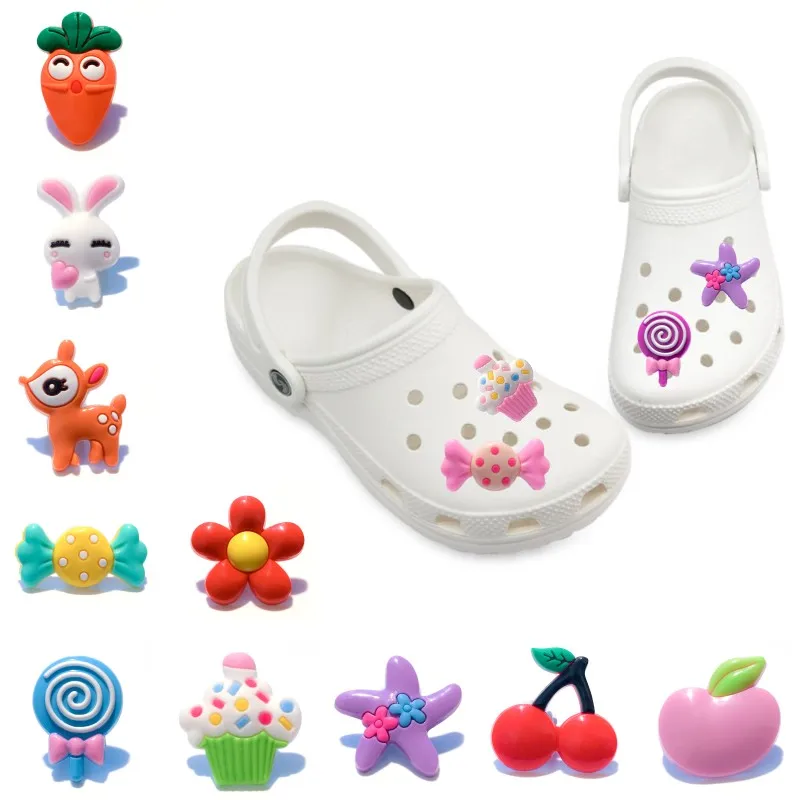 1-5 шт. Симпатичные Подвески для обуви из ПВХ для девочек аксессуары для конфет, тортов, сабо, яблони, вишни, цветы, украшения, кролик, олень, сандалии, украшения