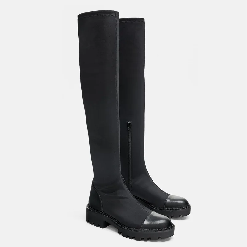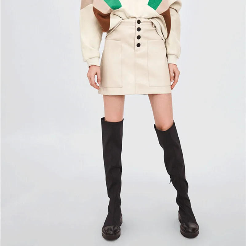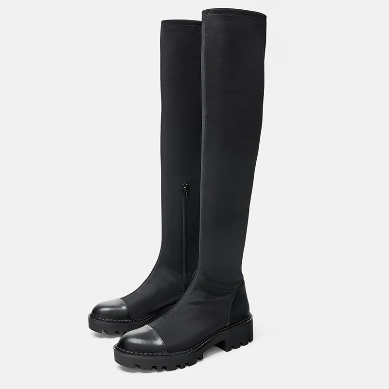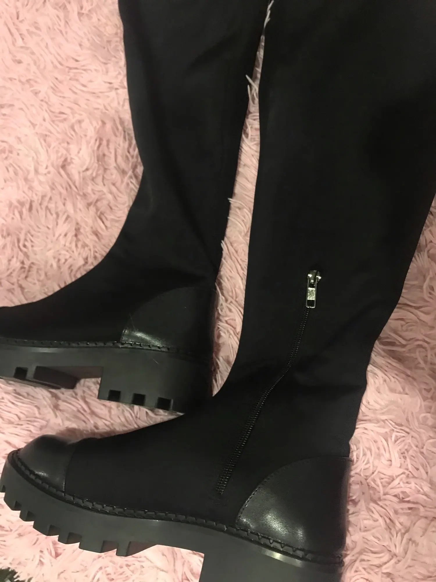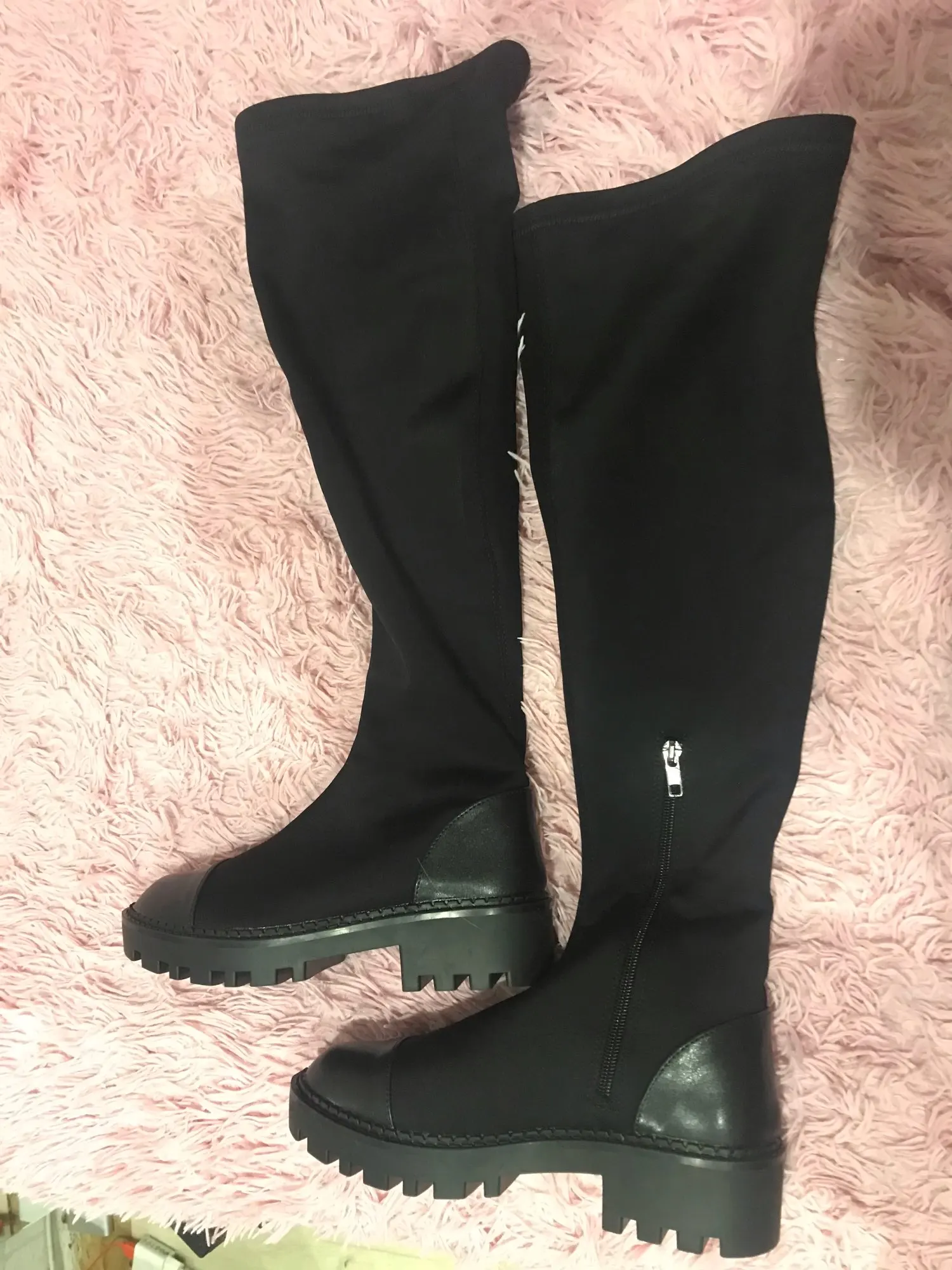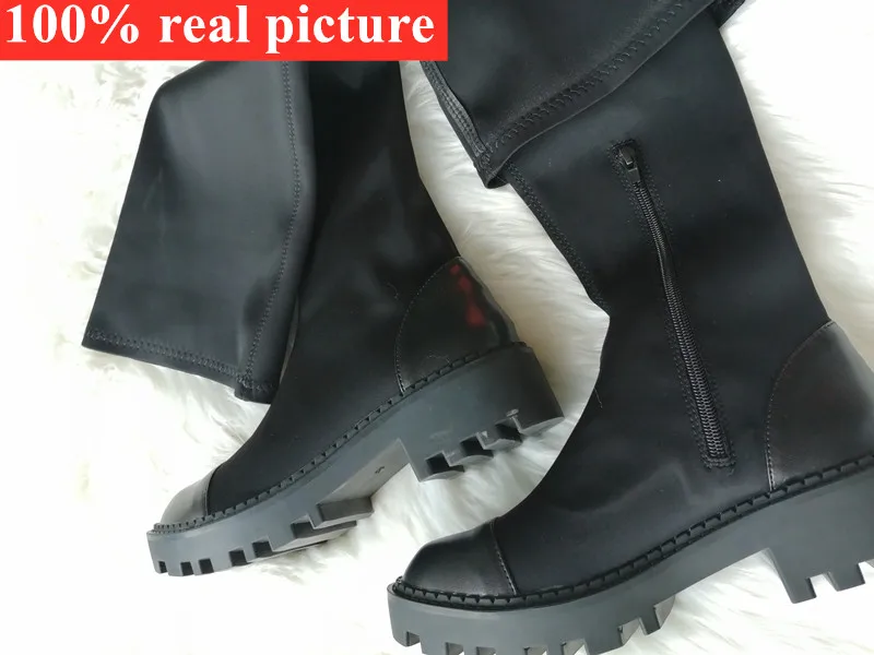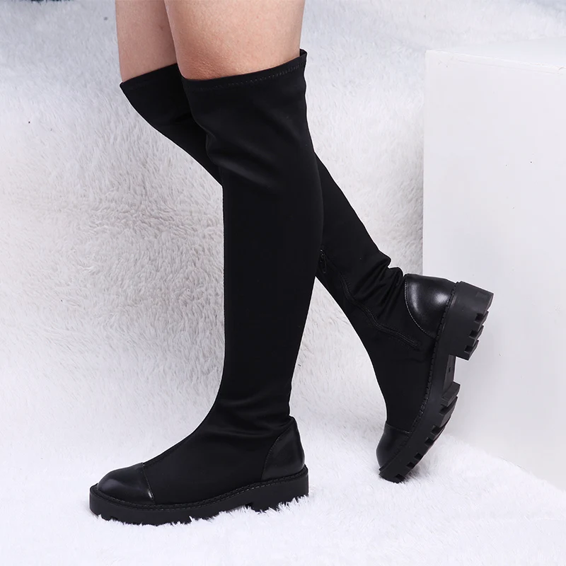 Дизайнерские женские Сапоги выше колена, женские высокие сапоги на платформе, женские зимние сапоги-чулки, черная женская зимняя обувь