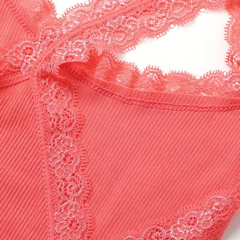Майка женская трикотажная, летняя, однотонная, ярких цветов, кружевная