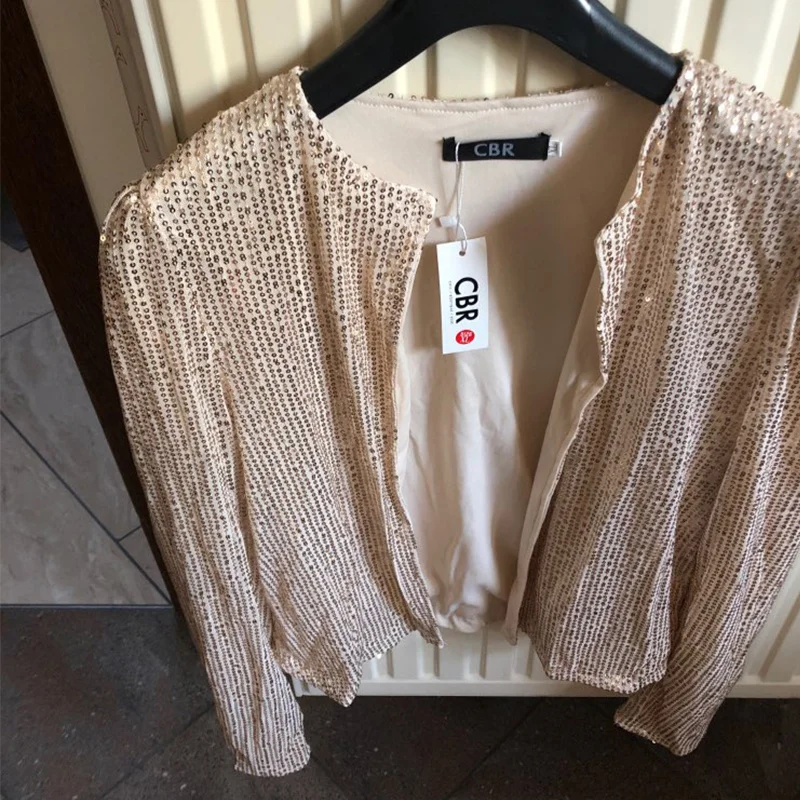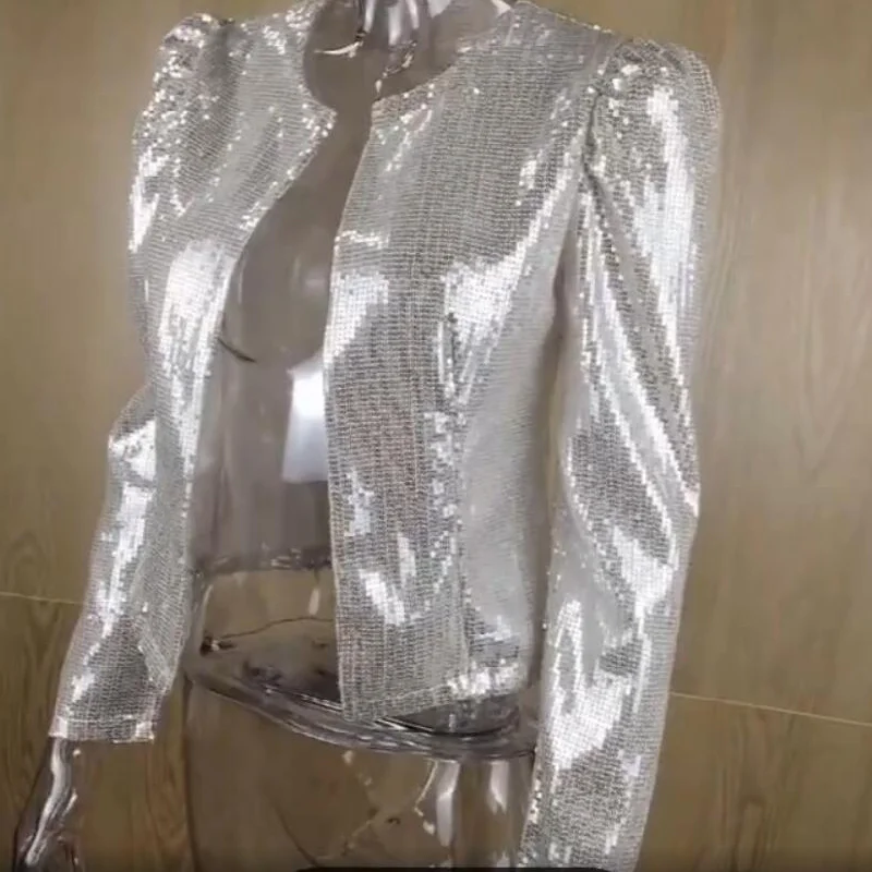 Куртка женская с блестками, модный однотонный короткий пиджак с длинным рукавом, блестящая повседневная облегающая уличная одежда, элегантная вечерняя вечерние, весна-осень