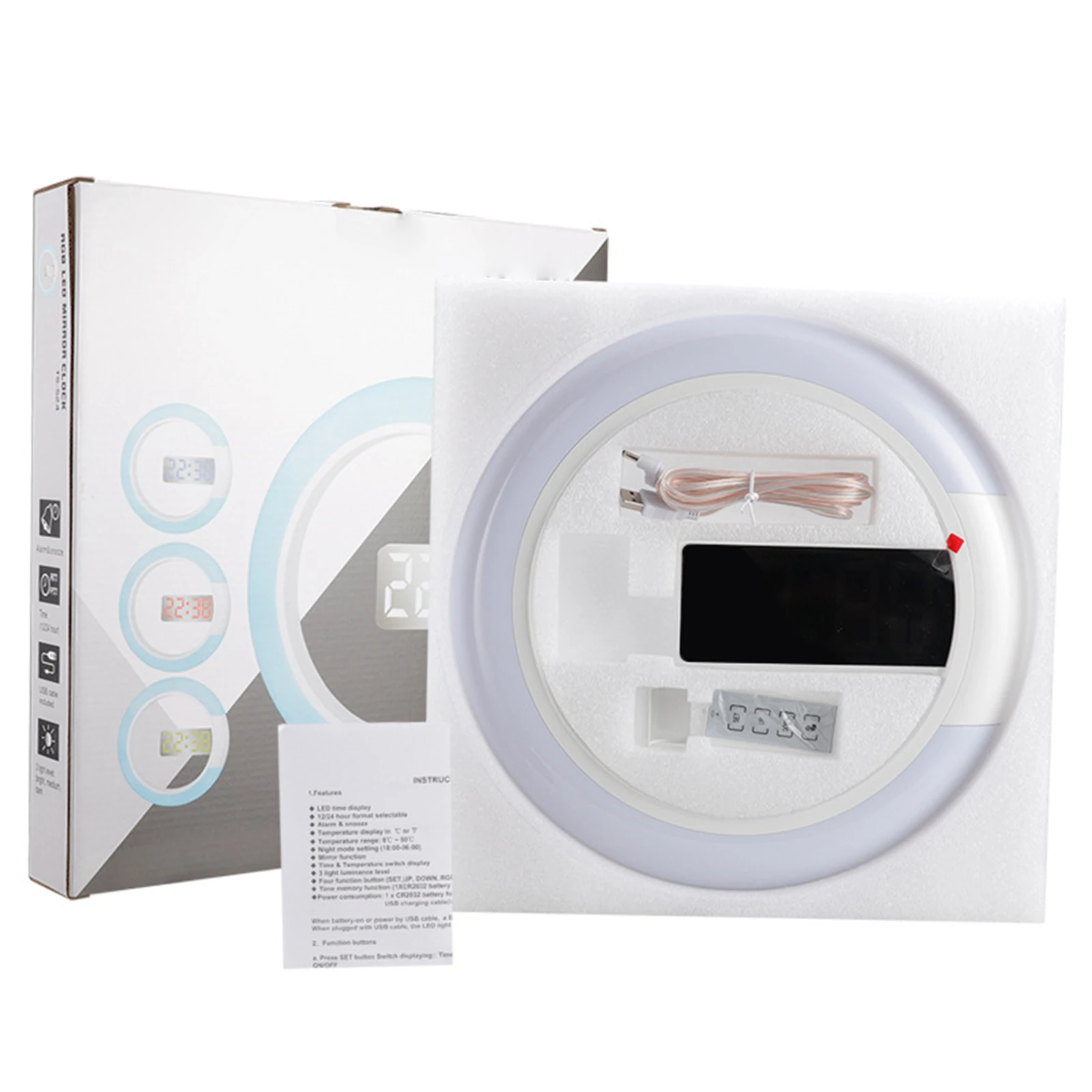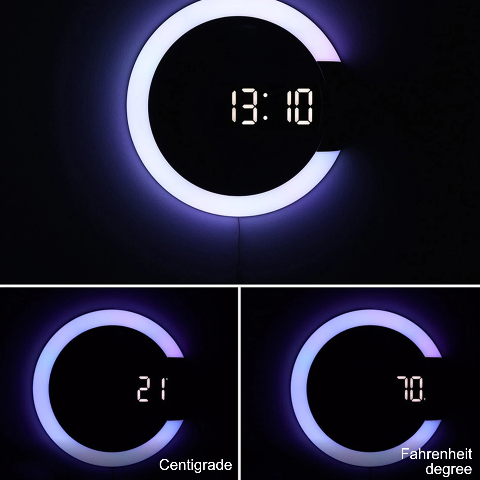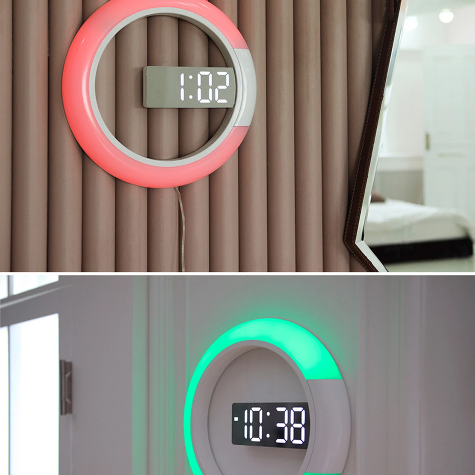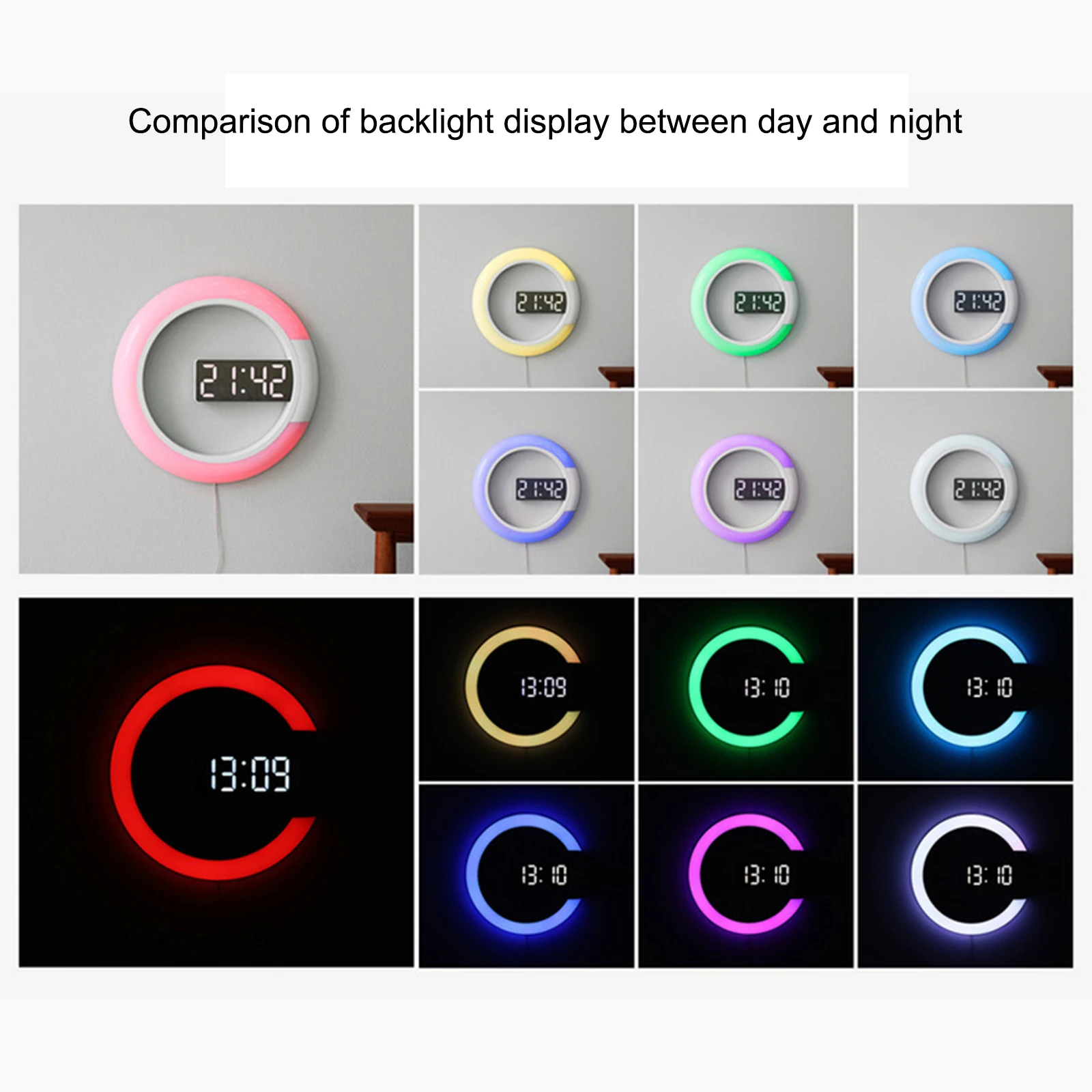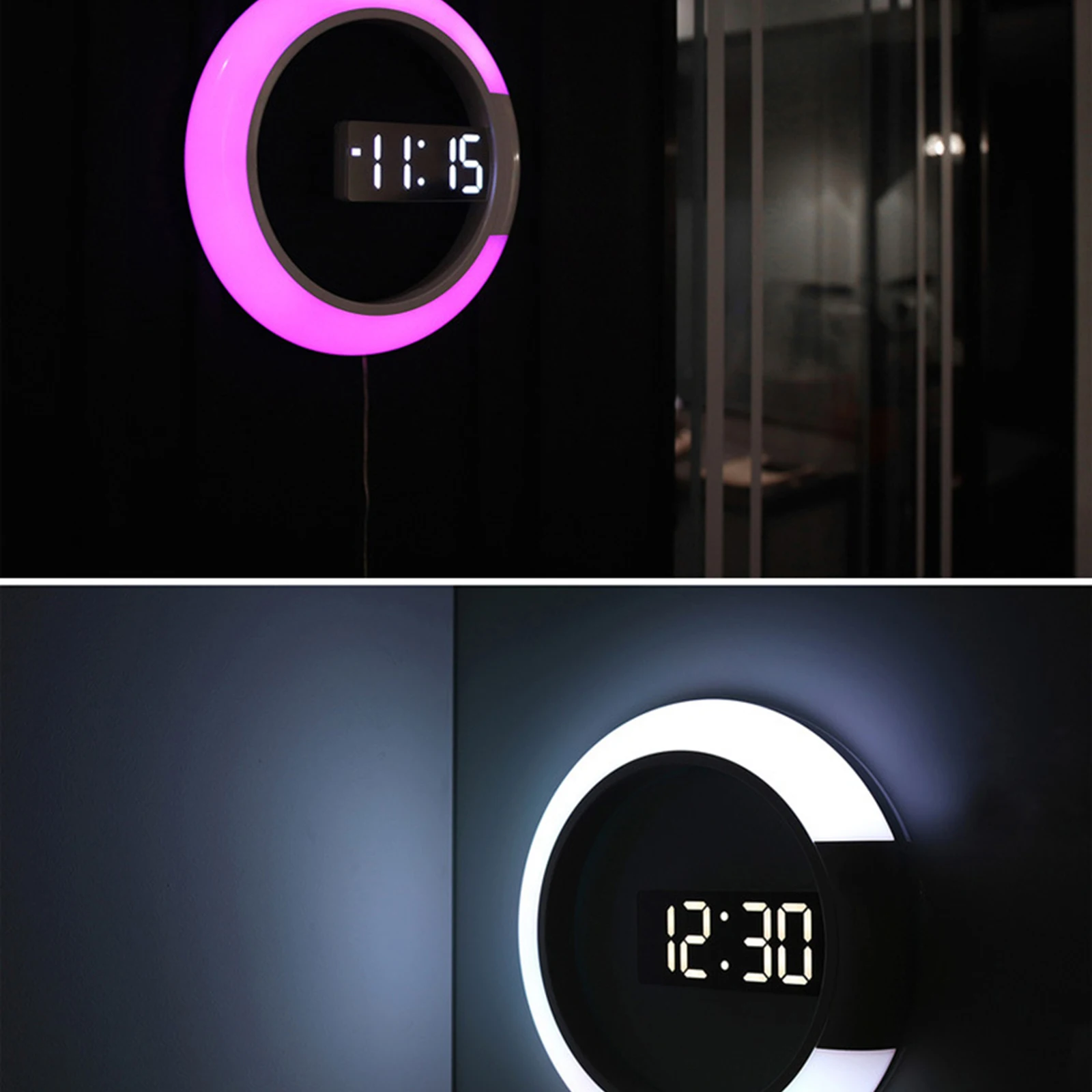 Цифровые настенные часы с 3D светодиодной подсветкой, зеркальные полые настольные часы с будильником, ночник с температурой 7 цветов, украшения для дома, гостиной