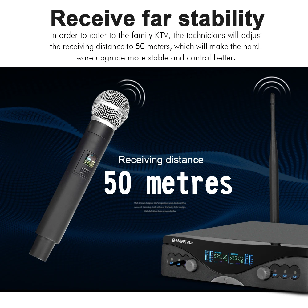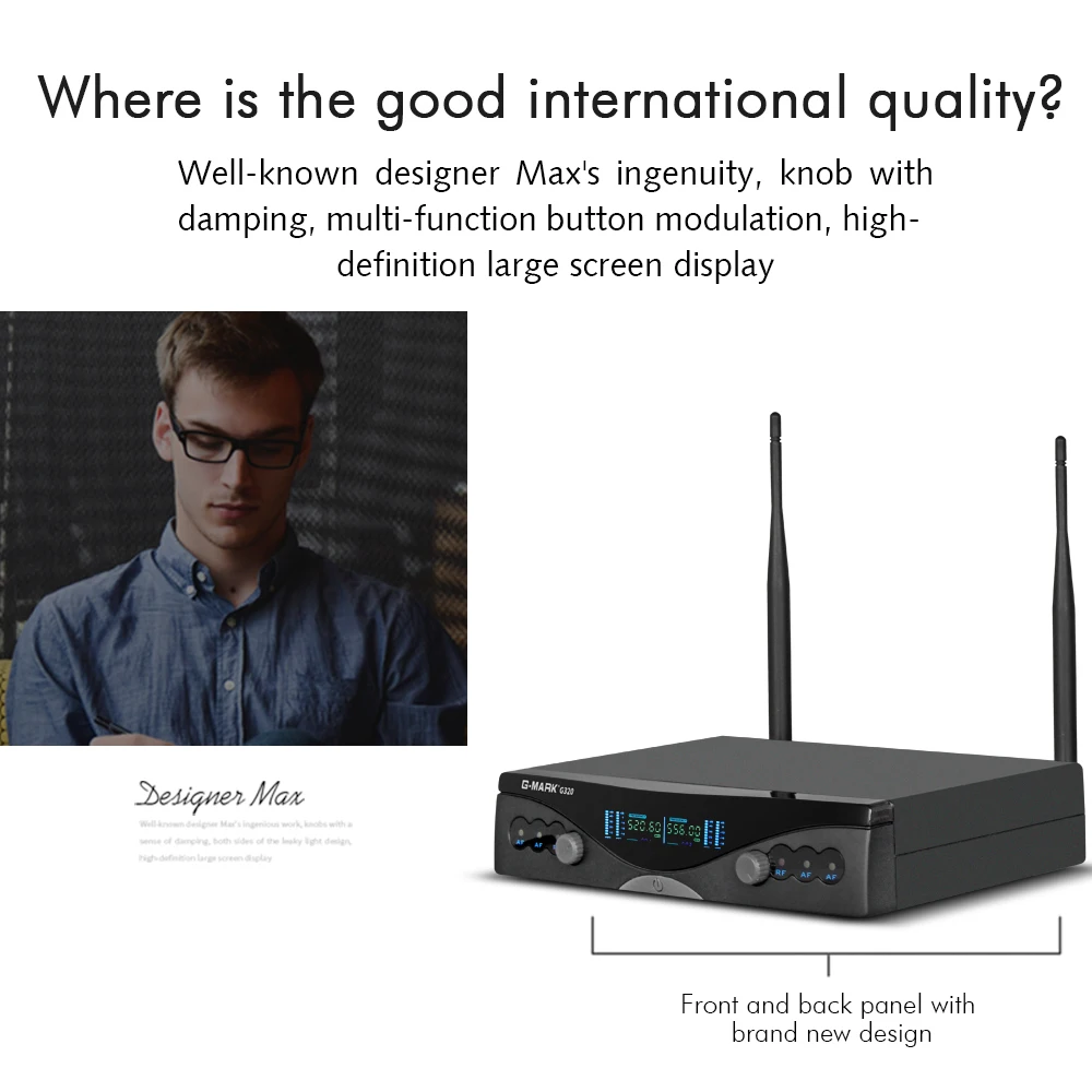 · Максимальная свобода во время вокальных выступлений для профессиональных певцов на сцене и артистов с G-MARK системой беспроводного микрофона.