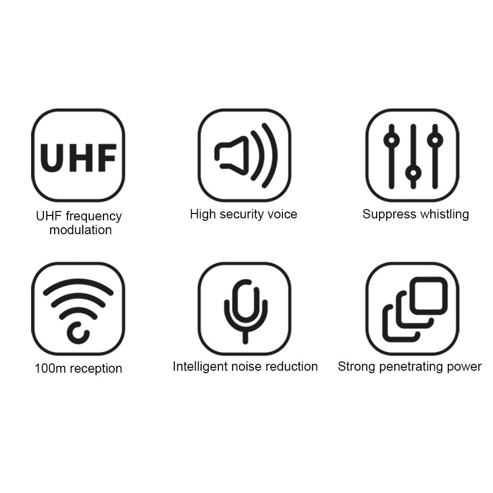 · УВЧ-Беспроводная передача UHF сигнала аудио обеспечивает непревзойденную производительность с работой до 180-240 футов для четкого, шума и без искажений, четкого вокала и отличного воспроизведения звука. Отлично подходит для конференций, вещания и общественных мероприятий.
