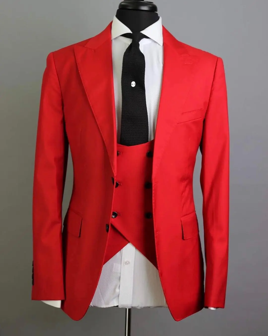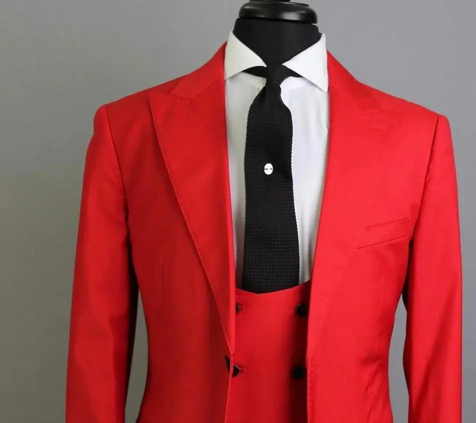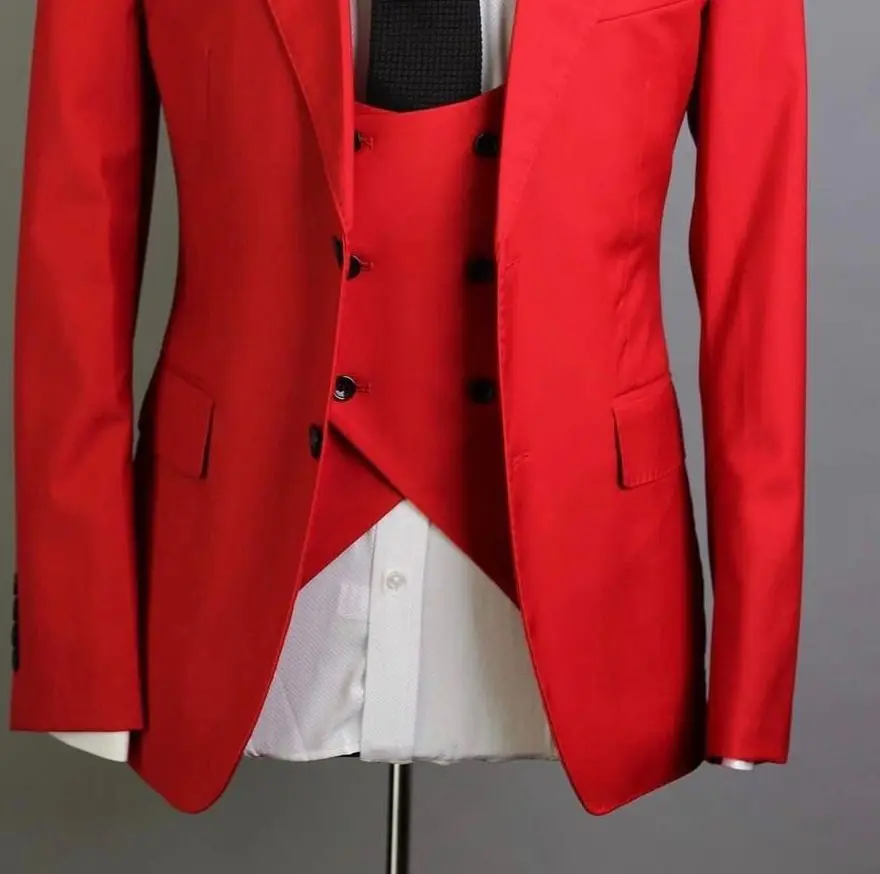 (Пиджак + жилет) Красивый белыйкрасный облегающий деловой костюм с пиковым лацканом с двумя пуговицами для свадьбы мужской костюм из 2 предметов строгий мужской фотокостюм