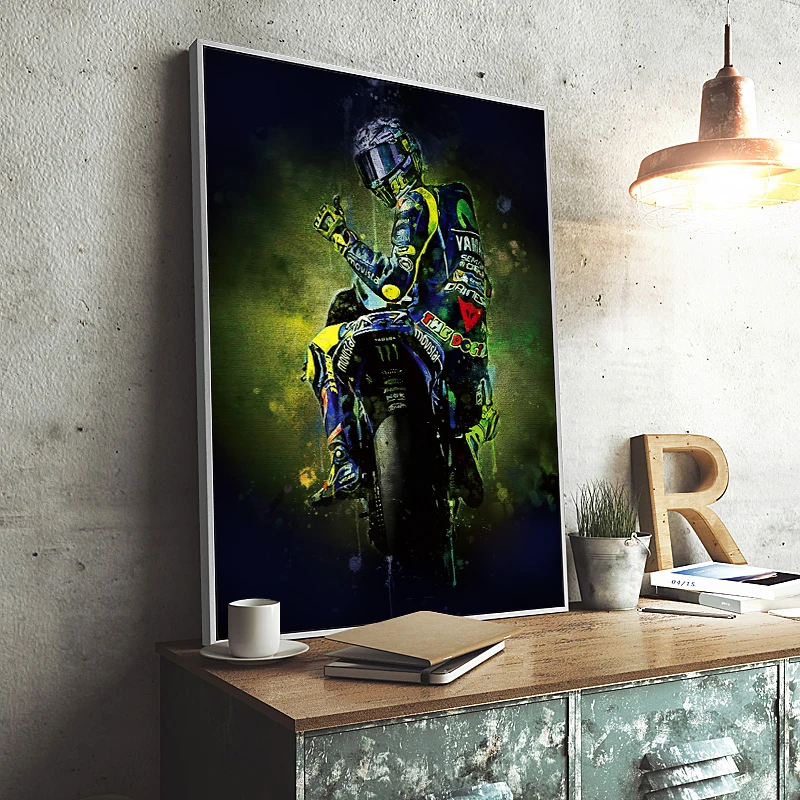 Роспись на холсте роспись Росси мотоциклиста, Настенная картина, украшение для комнаты в скандинавском стиле, декор для гостиной
