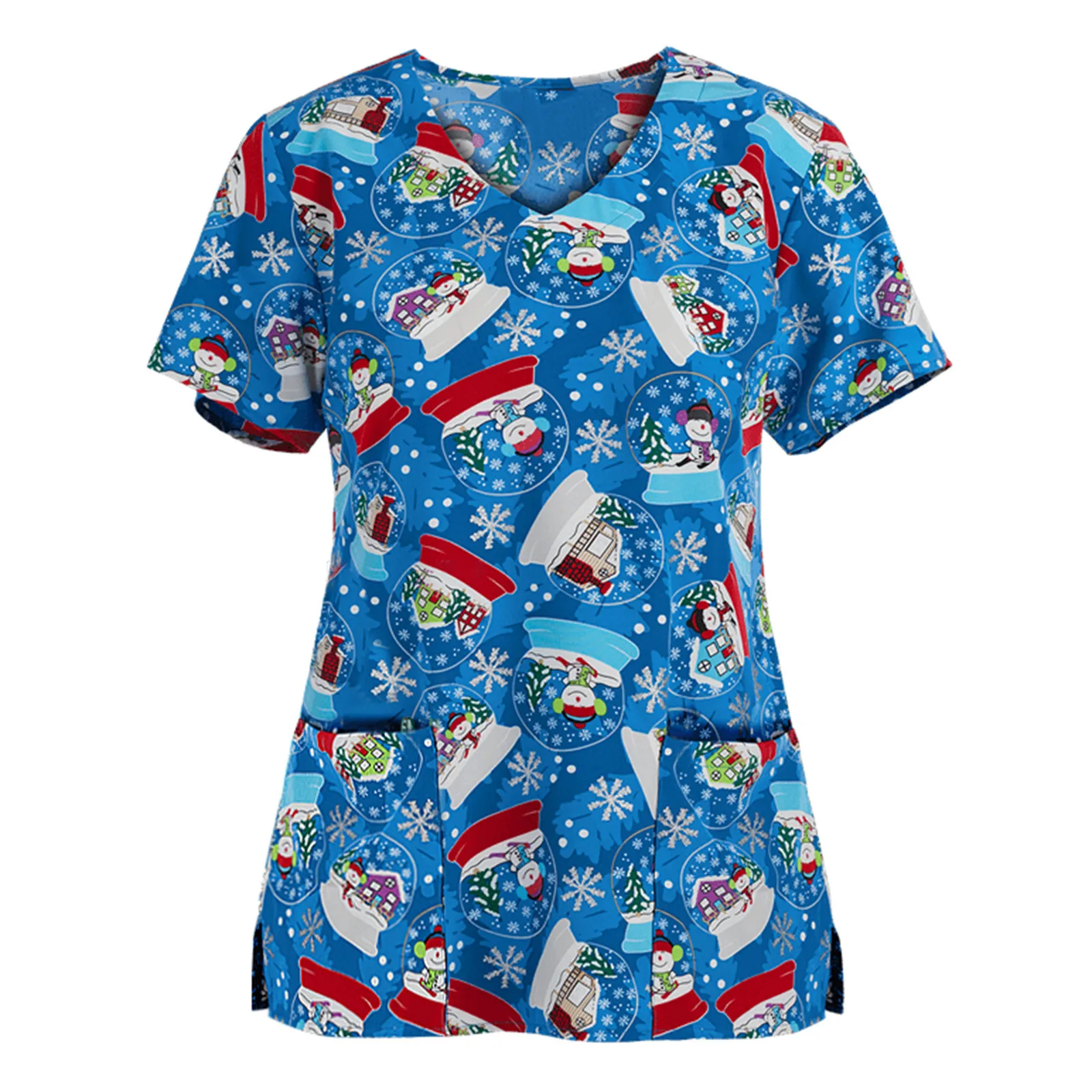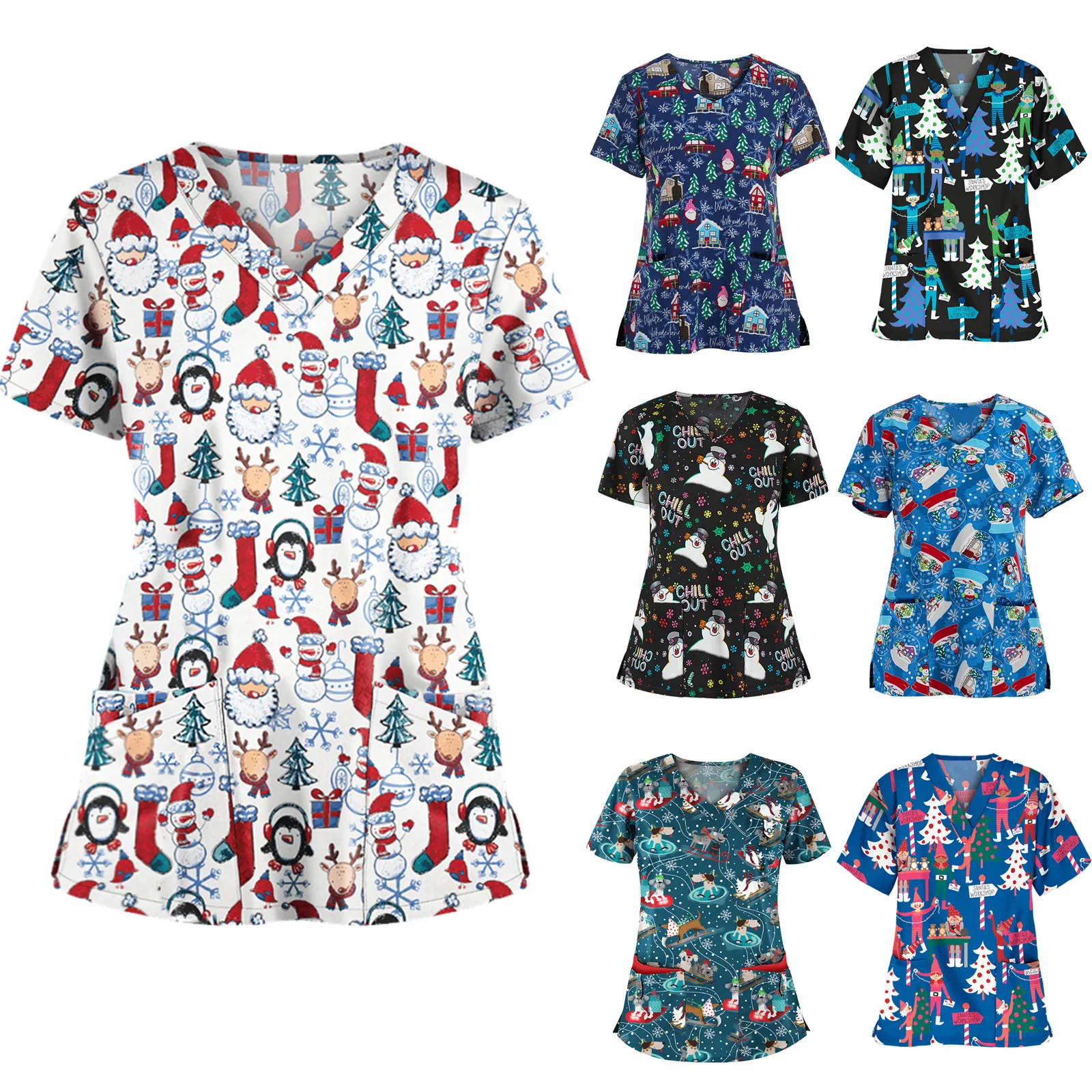 Униформа медсестры с рождественским принтом, скрабы, женская блузка...
