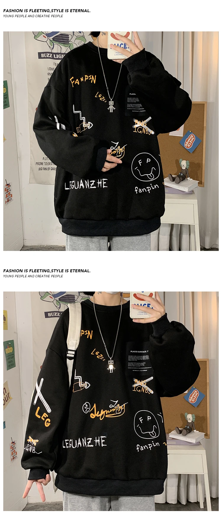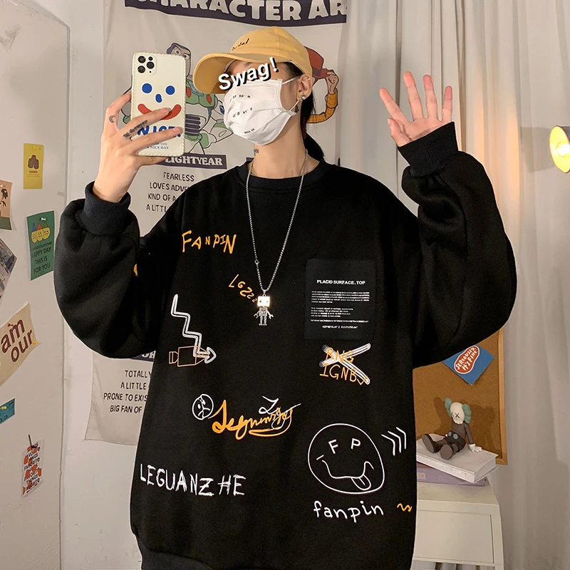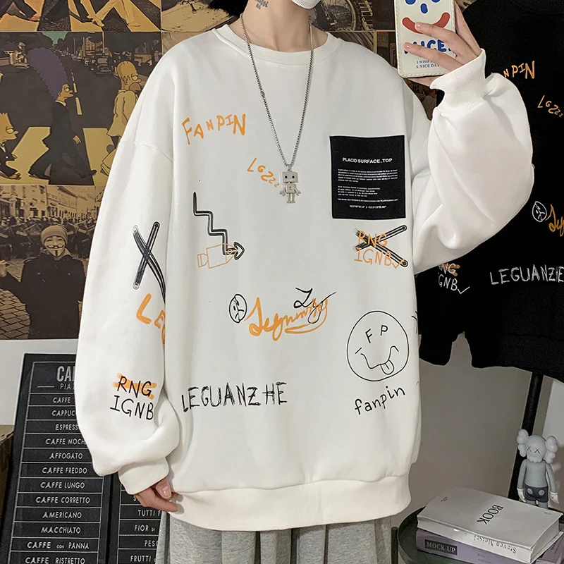 Privathinker, корейский Забавный принт, мужские повседневные свитшоты, черный, белый, большой размер, мужские пуловеры, 2022, Осень-зима, мужские толстовки