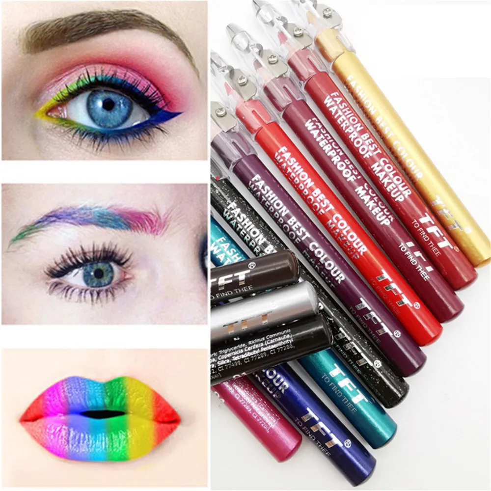 100% абсолютно новый водонепроницаемый цветной карандаш для век и подводки украсит ваши глаза, как вам нравится цвет: 12 цветов s на выбор Размер: полный размер Особенности: водонепроницаемый, долговечный Подходит: Eyeline, под eyeline, карандаш для век, подводка для губ длина подводки для глаз: около 14 см (колпачок в комплекте) В комплект входит: 1 карандаш для подводки глаз с точилкой Примечание: этот карандаш для век не может скручиваться и поворачиваться, вы можете использовать точилку для карандашей. И точилка для карандашей включает в себя посылка. Внимание: только для наружного использования. Избегайте контакта с глазами. Храните его в тени и держите подальше от детей.