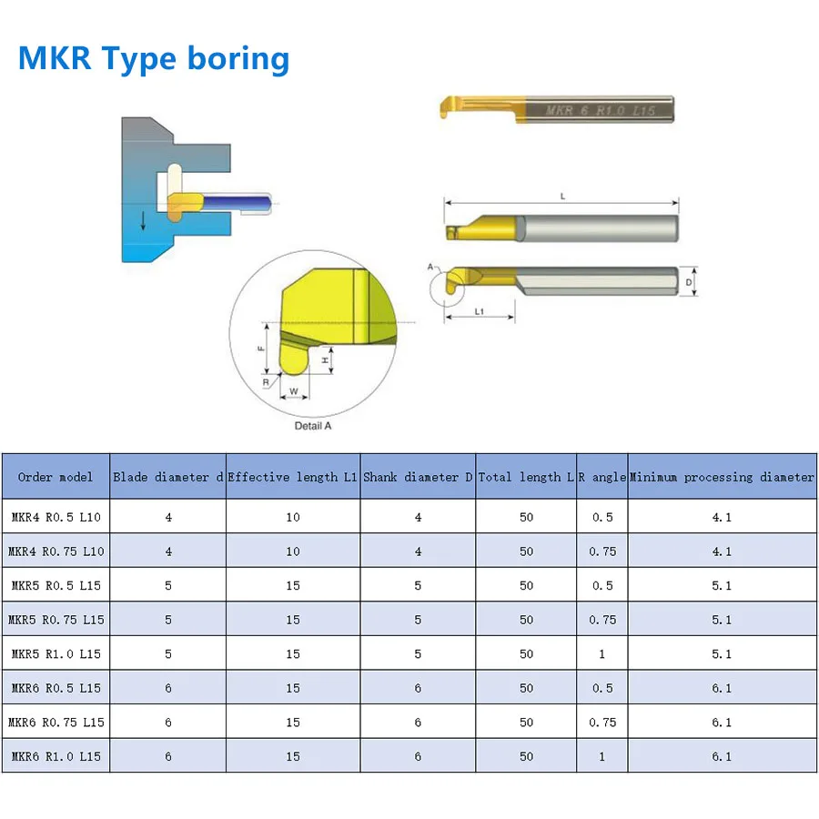 Инструмент для расточки MKR MKR5 R1.0 L15 MKR6 R0.75 L15 MKR6 R0.5 L15, твердосплавный резак продукция компании Precision Boring