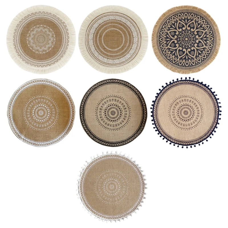 Круглая подстилка с мандалой в стиле бохо, плетеная подставка с бахромой и кисточками, термостойкая подставка под чашку, подставка под посуду для украшения кухонного стола