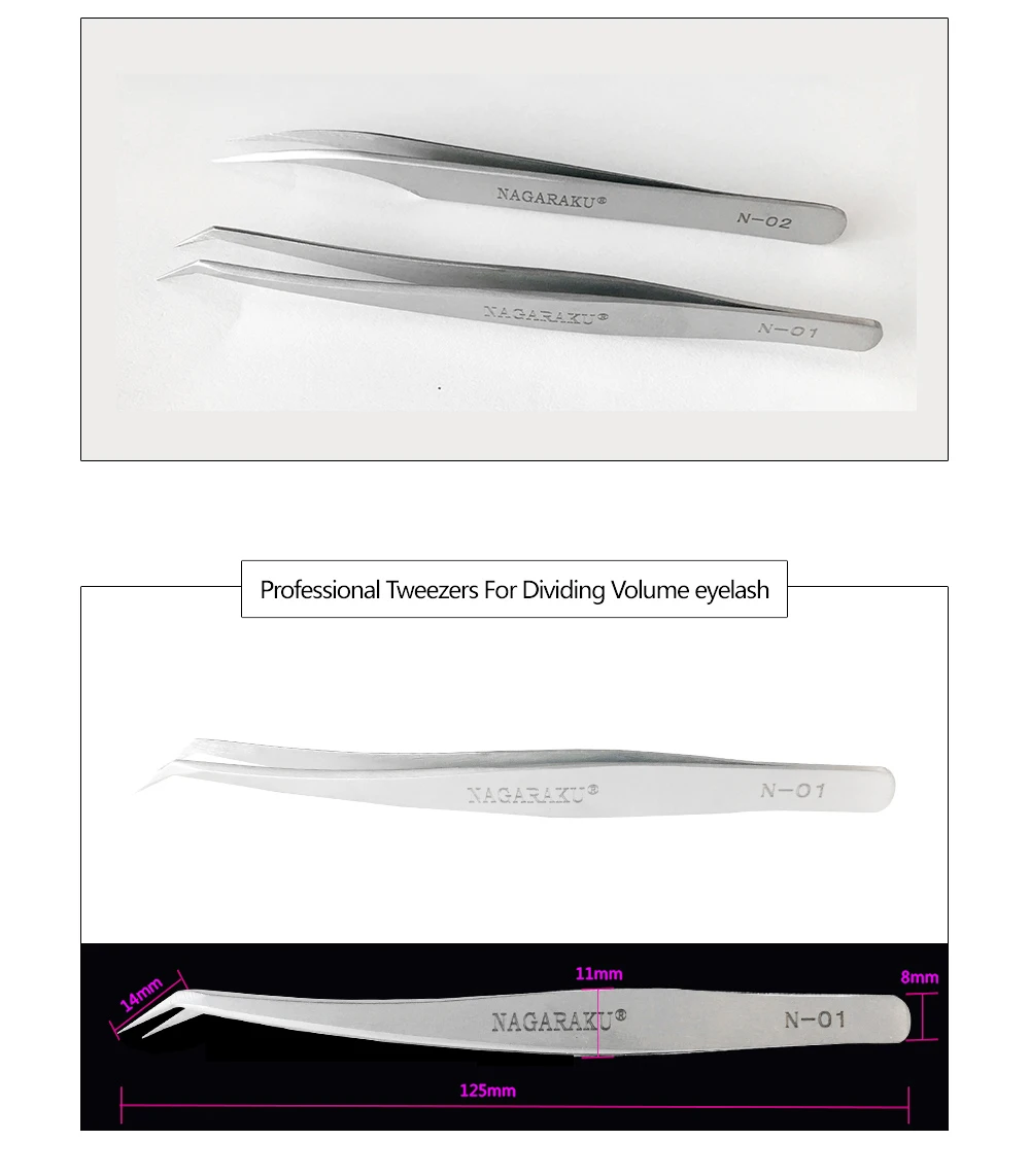 Пинцет NAGARAKU из нержавеющей стали, прямые изогнутые инструменты для наращивания ресниц, точные щипцы, заостренный зажим, набор для макияжа