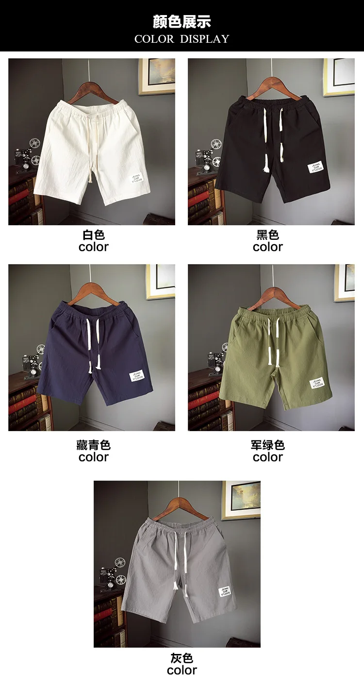 Шорты мужские льняные свободного покроя, модные пляжные короткие шо...