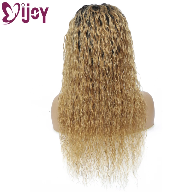 IJOY богемные вьющиеся головные парики бразильские человеческие волосы парики для чернокожих женщин Омбре медовая блондинка Remy волосы полностью машинная работа парик
