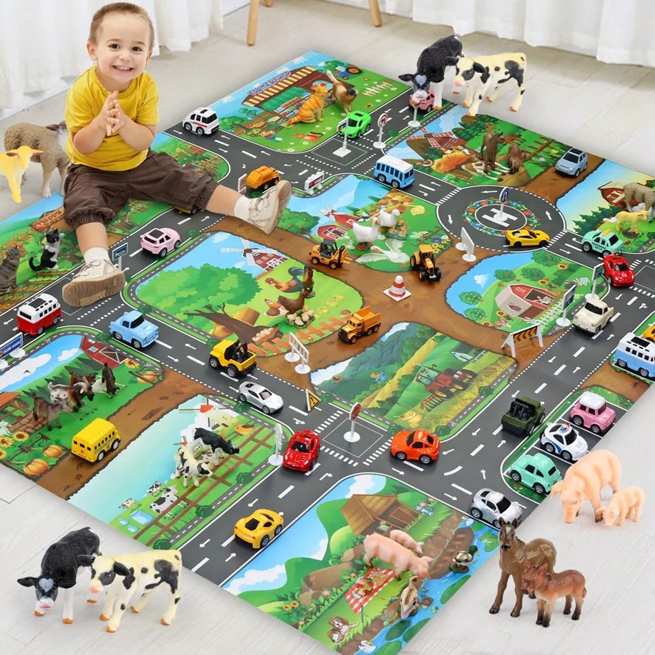 Детская счастливая ферма, карта, игрушечный автомобиль для мальчиков и девочек, Обучающие игрушки, искусственная ферма, зоопарк, ковер, детские игрушки, игра
