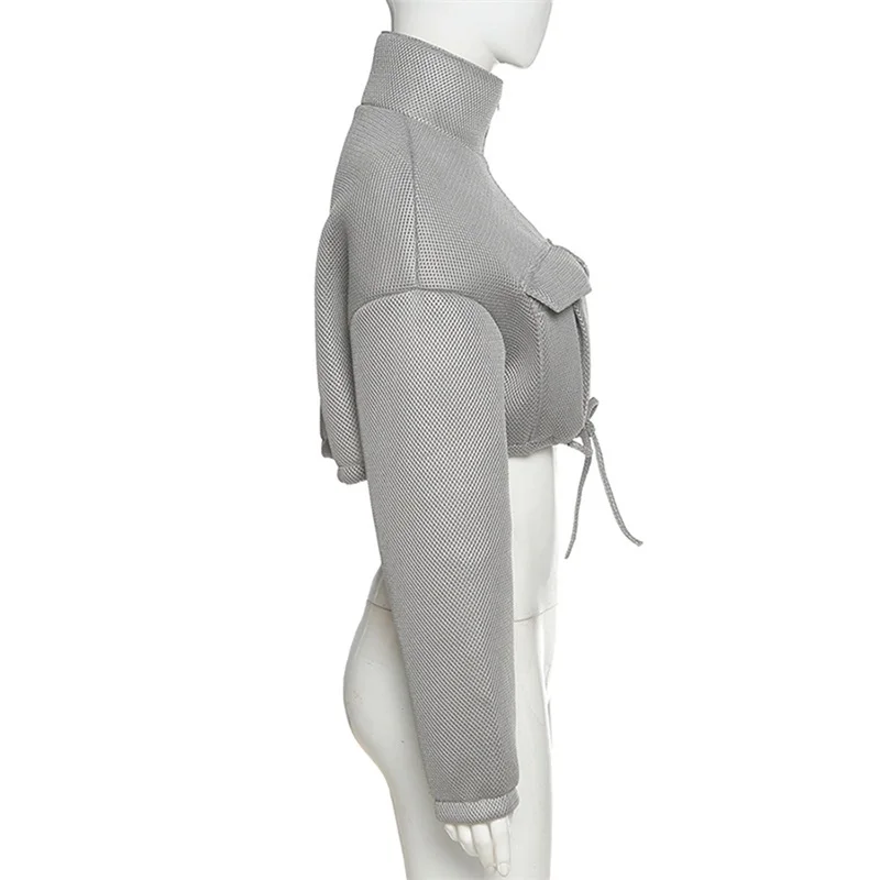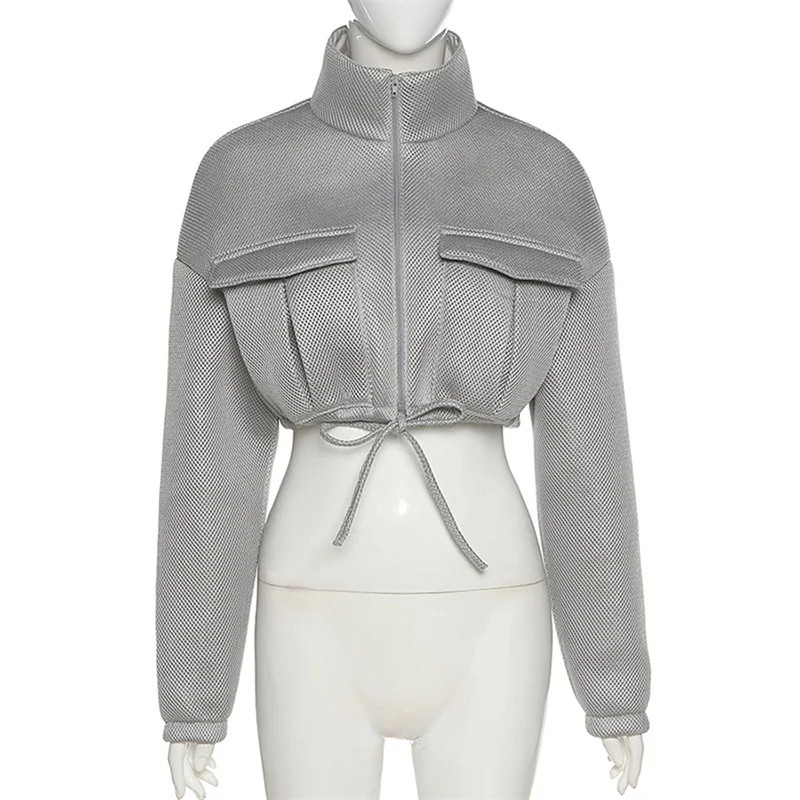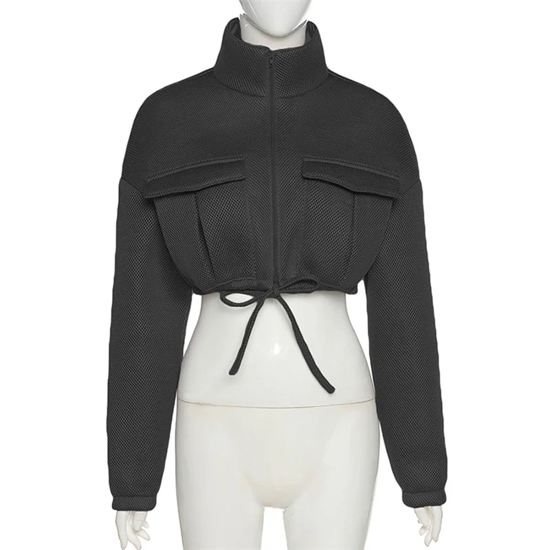 Сетчатое клетчатое осенне-весеннее пальто для женщин, трендовая водолазка на молнии с карманом, укороченная куртка, однотонная тонкая женская верхняя одежда на завязках, хит продаж