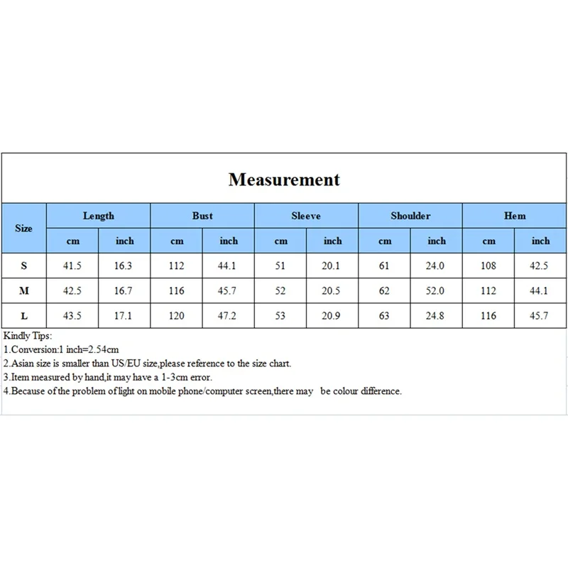 1. Пожалуйста, внимательно проверьте таблицу размеров перед покупкой товара. Если вы не знаете, как выбрать размер, пожалуйста, свяжитесь с нашей службой поддержки клиентов