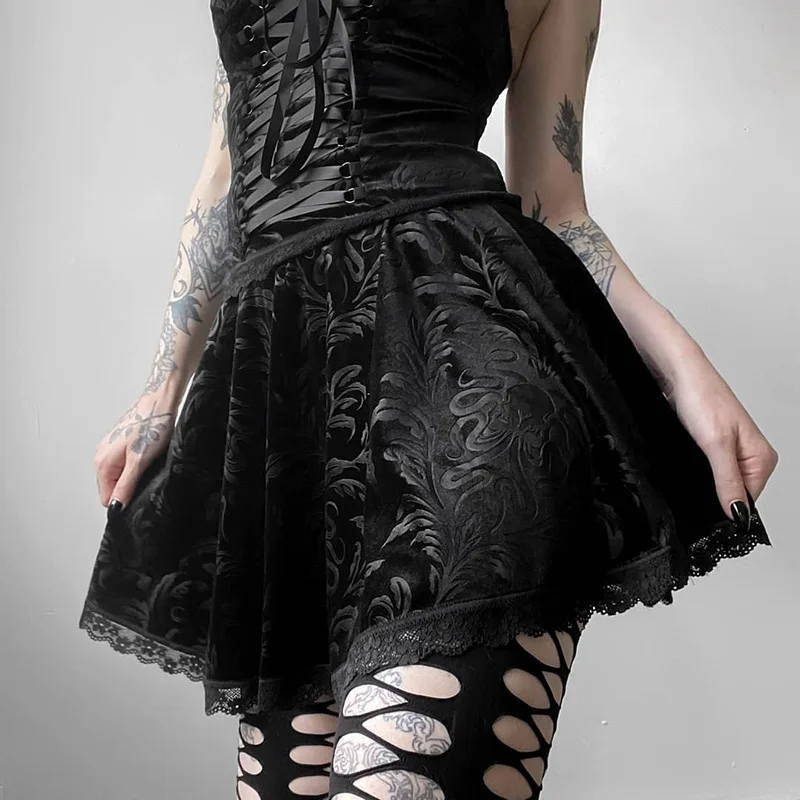 2021 Mall готическая Сексуальная юбка, бархатная черная уличная оде...