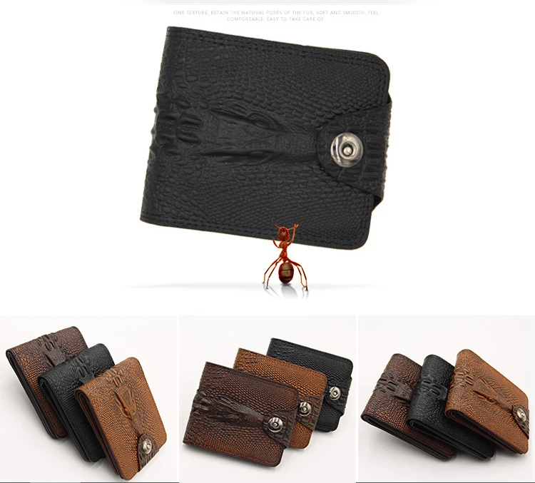 Мужской короткий кошелек из натуральной кожи, бумажники в винтажном стиле с крокодиловым тиснением