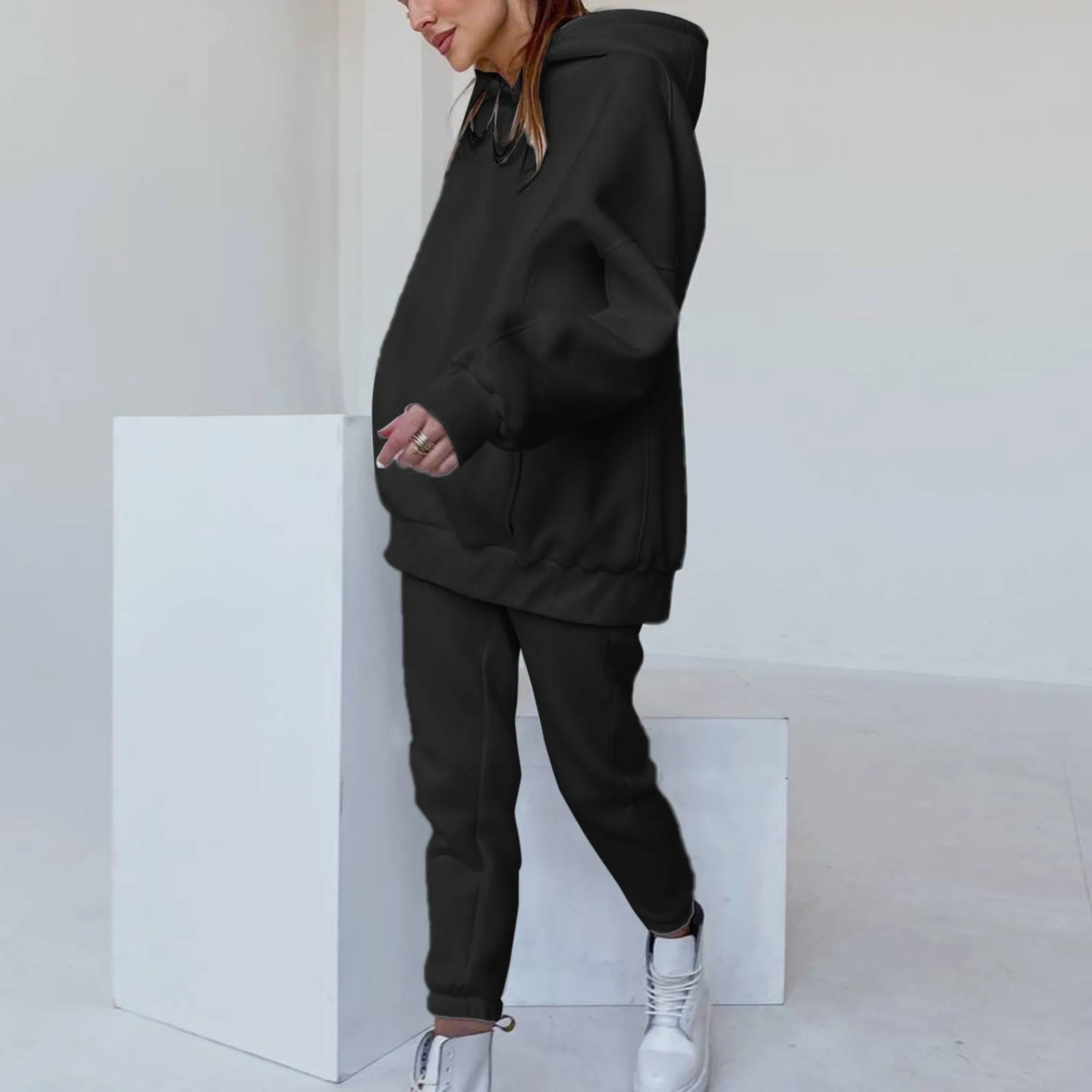 Женский однотонный спортивный костюм, толстовка с длинным рукавом, свободные брюки, костюм из двух предметов, одежда для отдыха, зима