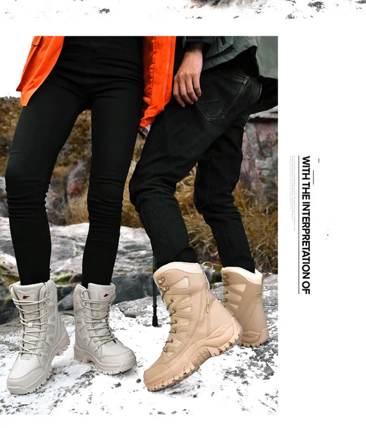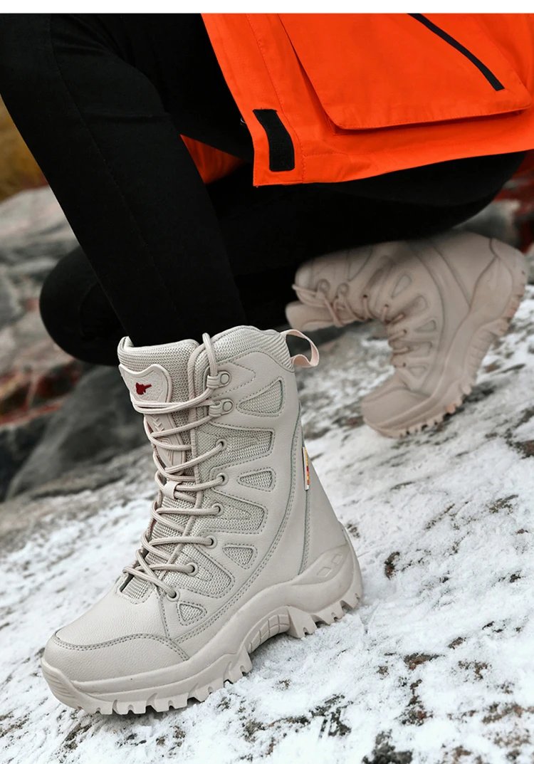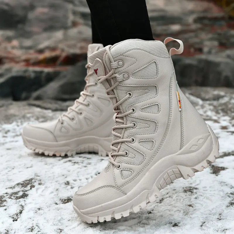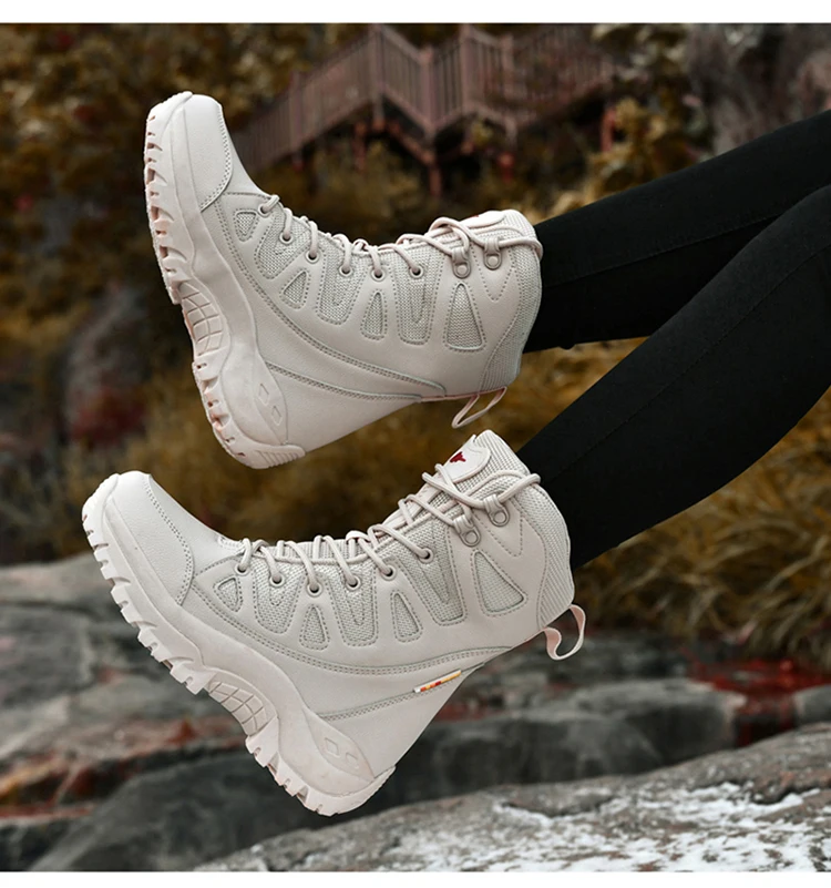 Модные Бежевые женские зимние туристические кроссовки для активного отдыха, высокие берцы для скалолазания, мужские и женские зимние ботинки, тактическая обувь