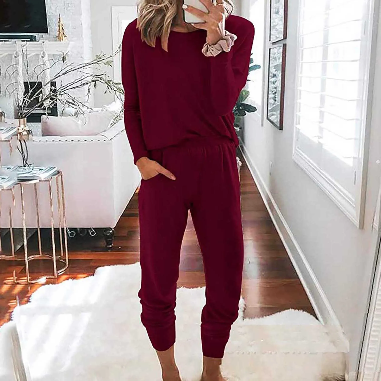 Женский спортивный костюм, домашний спортивный костюм из двух предметов, блузка с длинным рукавом и длинные брюки, пижамы, повседневные пуловеры, спортивные костюмы, 2021 #40