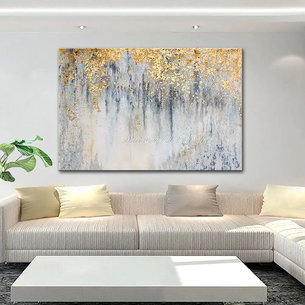 Картина на стену Mintura для гостиной, Масляные картины на холсте, ручная роспись, Золотая абстракция, украшение дома, настенная живопись, без рамки.