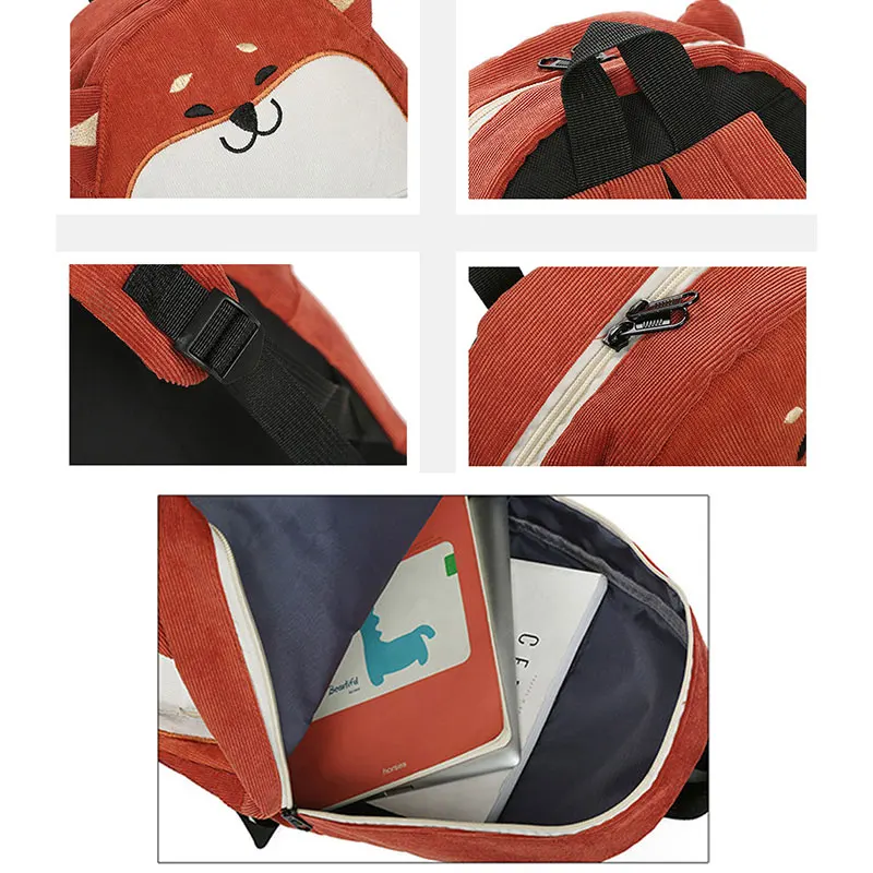 Милые вельветовые рюкзаки для женщин, школьные ранцы в японском стиле с вышивкой лисы для девочек-подростков, большие женские дорожные сумки