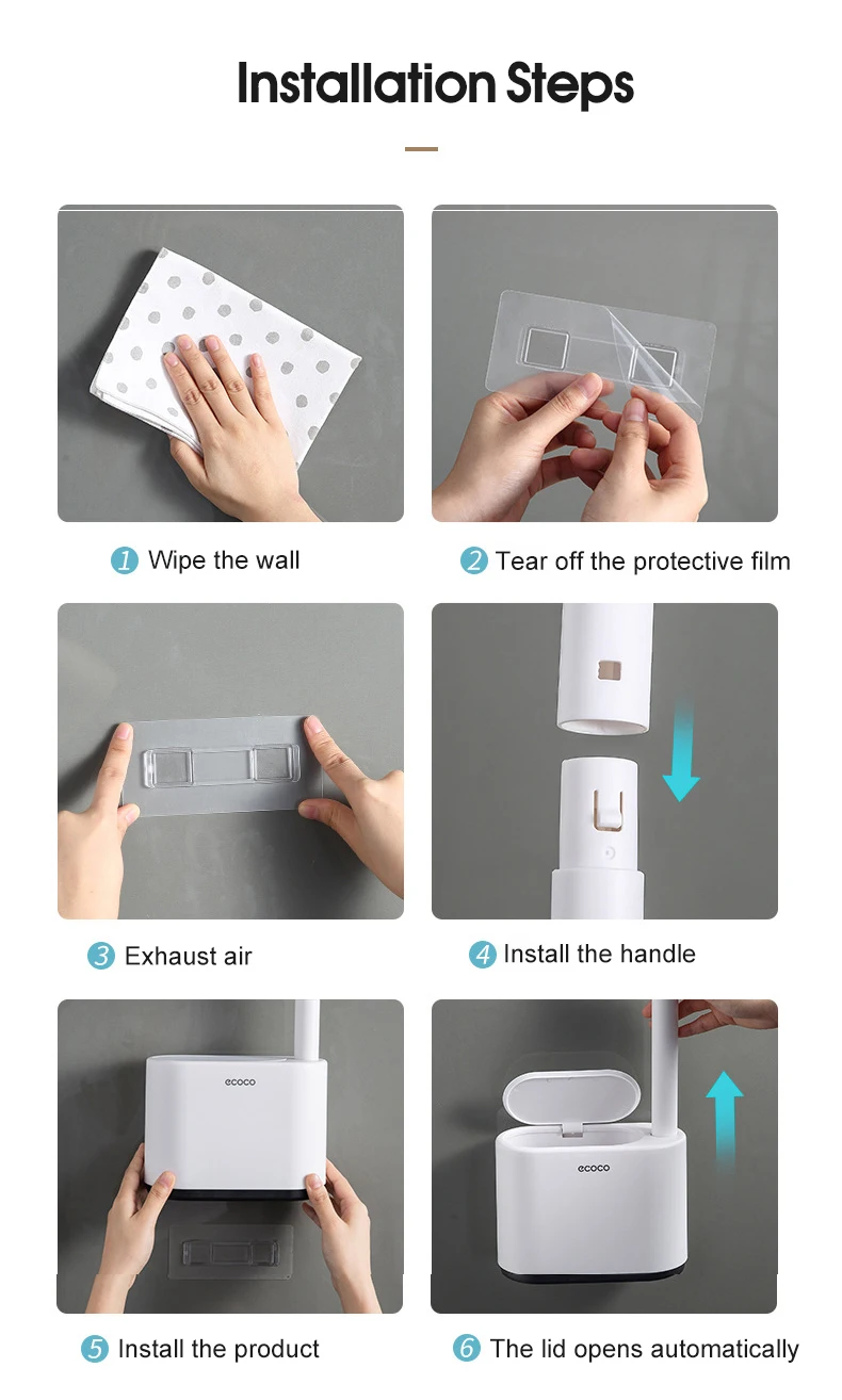 Ecoco одноразовая щётка для туалета с жидкостью для очистки, настенный инструмент для очистки для ванной комнаты, сменная щетка, аксессуары для туалета