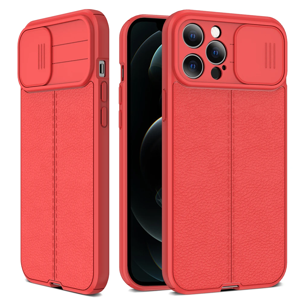 Кожаный чехол с текстурой личи для iPhone 12 11 13 ProMax, защитный чехол для скользящих объективов ifone 11 12 13 Pro 13 12 Mini Coque