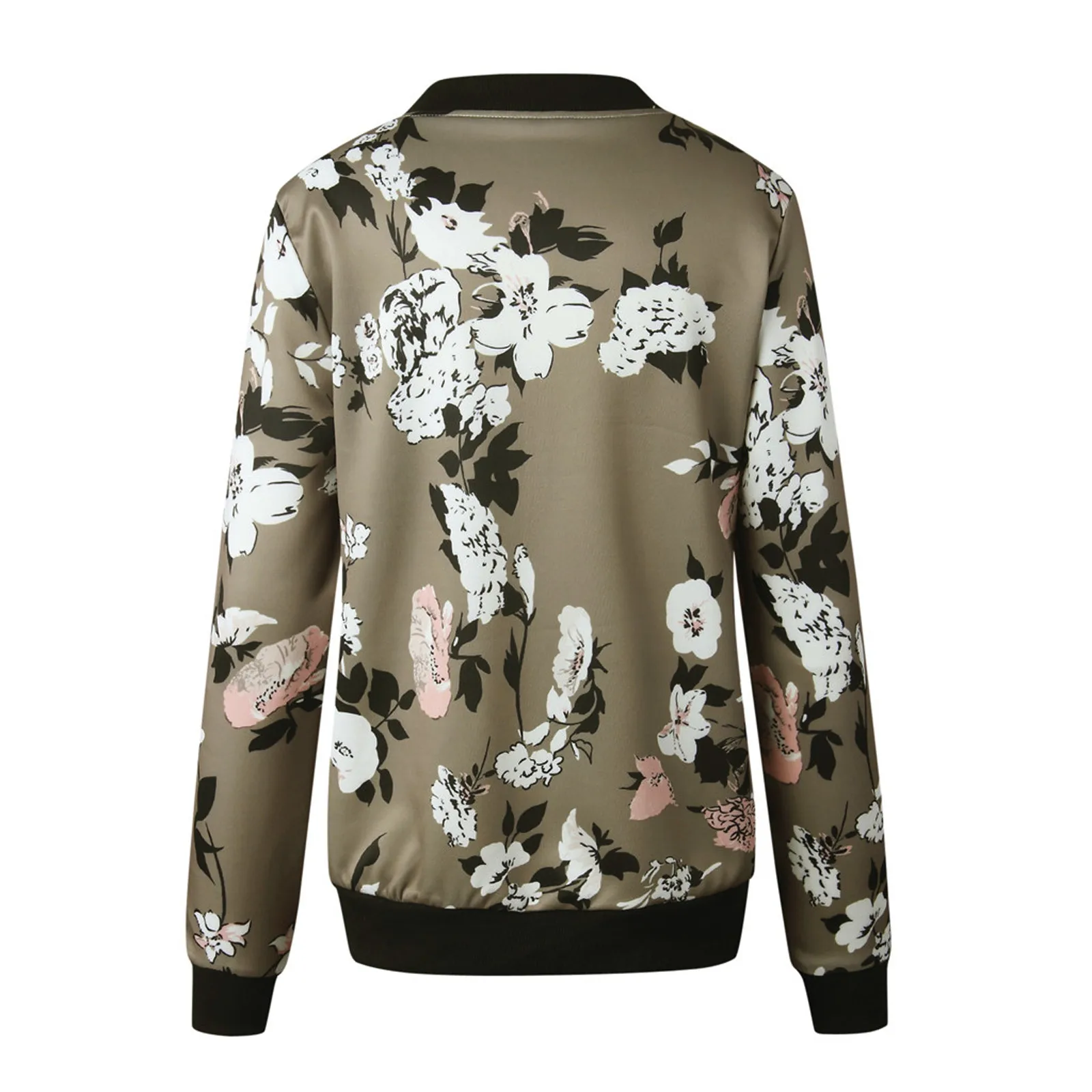Куртка-бомбер женская с длинным рукавом, на молнии, с цветочным при...
