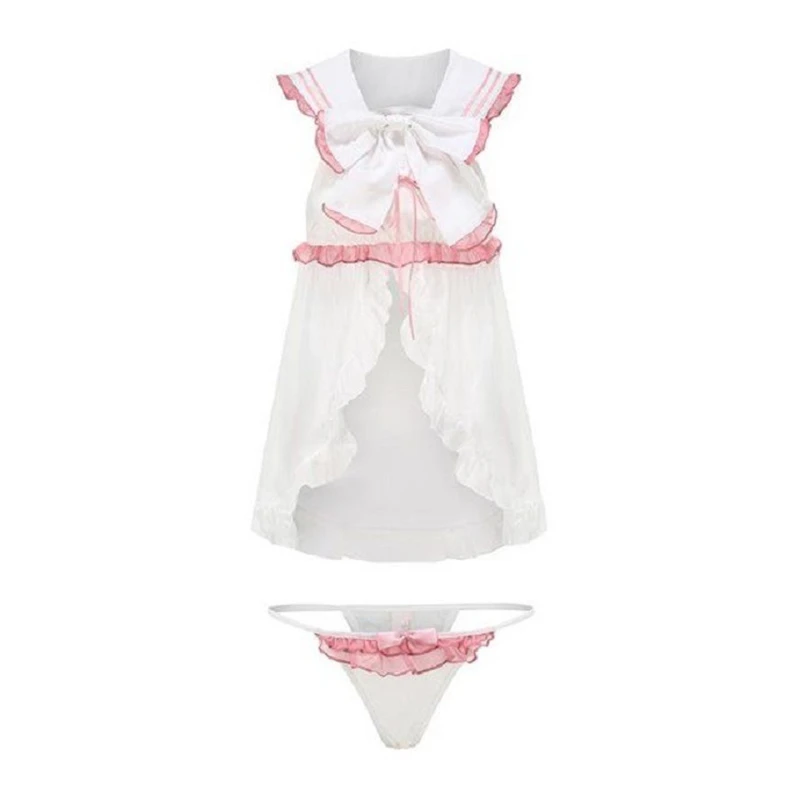Пол: женщин Материал: нейлон Цвет: белый Размер: один размер Посылка: 2 шт./компл. (ночная рубашка и T-Back)