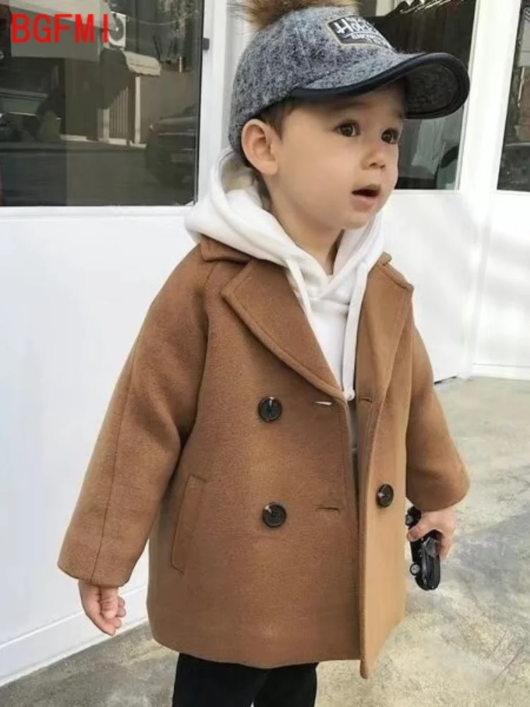 Зимние куртки в клетку для мальчиков и девочек, шерстяной двубортный тренч для маленьких мальчиков, Осенняя детская верхняя одежда с лацканами, пальто