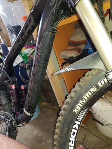 Очень хороший продукт, легко устанавливается, мне пришлось сделать вырезы, потому что у меня есть vtt все оторвано. Кажется, хорошо держится. Рамка хорошо защищена. Я надеюсь, что это продлится во время стирки горного велосипеда. Я вернусь, чтобы сказать.