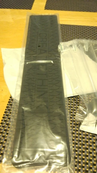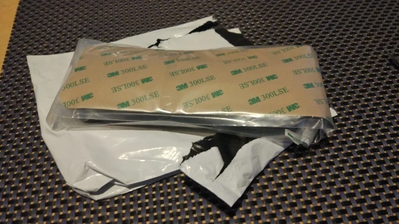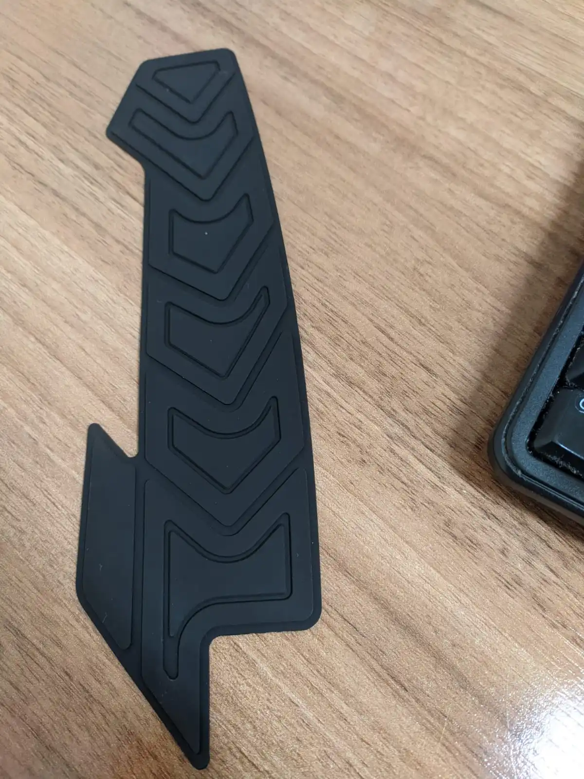 Думал, будет поболее. Кусок резины, мягкий, не жёсткий. С обратной стороны скотч двусторонний 3М